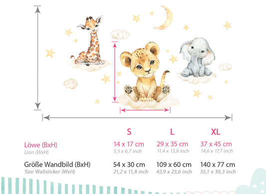 Klebekids Wandtattoo Safaritiere Giraffe Löwe personalisiert DK1154