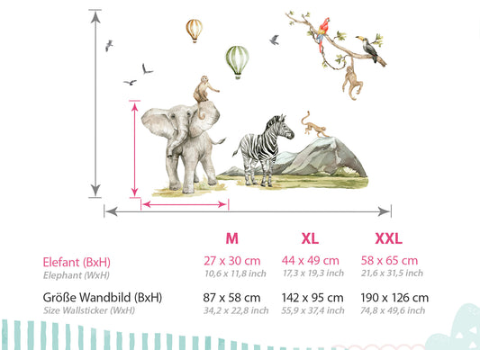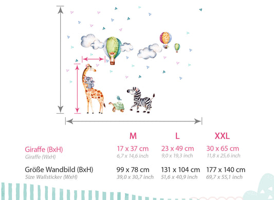 Wandtattoo Safaritiere in Heißluftballons DK1032