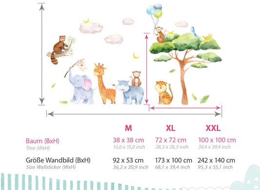 Wandtattoo Dschungeltiere im Ballon DK1103
