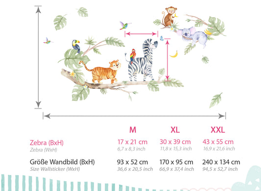 Wandtattoo Dschungeltiere Zebra Tiger DK1107