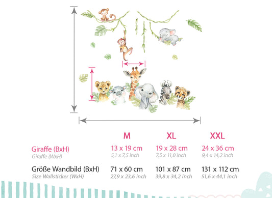 Wandtattoo Dschungeltiere Giraffe Löwe DK1148