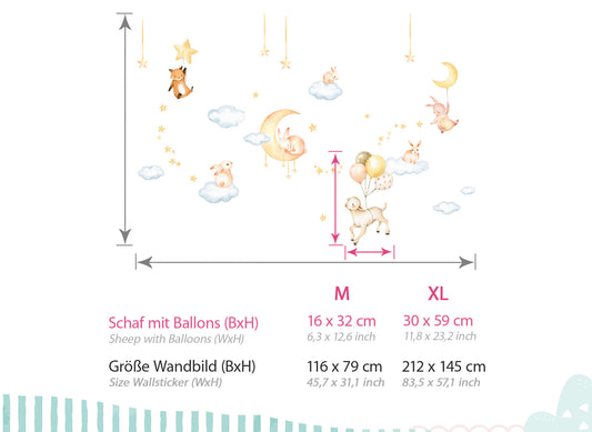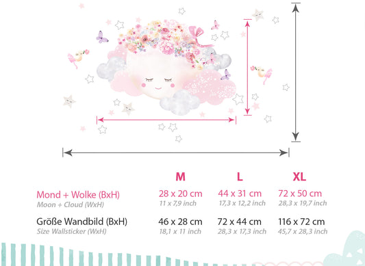 Wandtattoo Wolken & Mond mit Schleife Weiß / Rosa DK1080