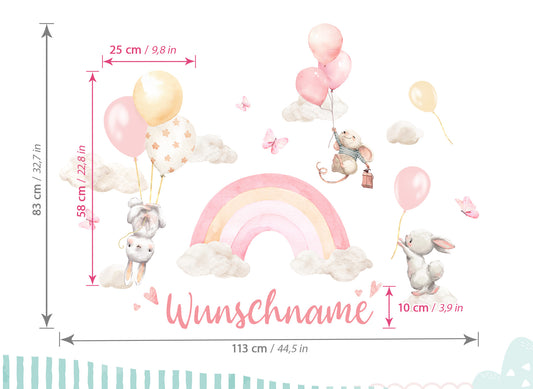 Wandtattoo Regenbogen Tiere personalisiert DK1151