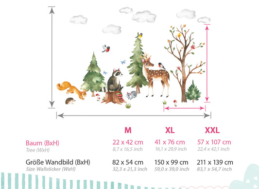 Wandtattoo Waldtiere mit Bäume DK1057