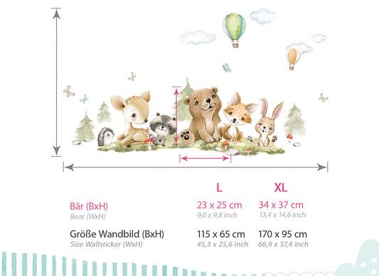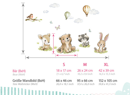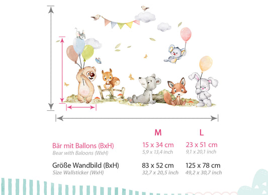 Wandtattoo Waldtiere Bär Fuchs Ballons DK1116