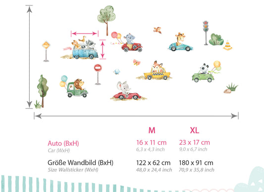 Wandtattoo Tiere mit Autos DK1130