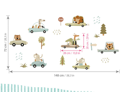 DekoKinderzimmer Wandtattoo Autos & Tiere DK1143