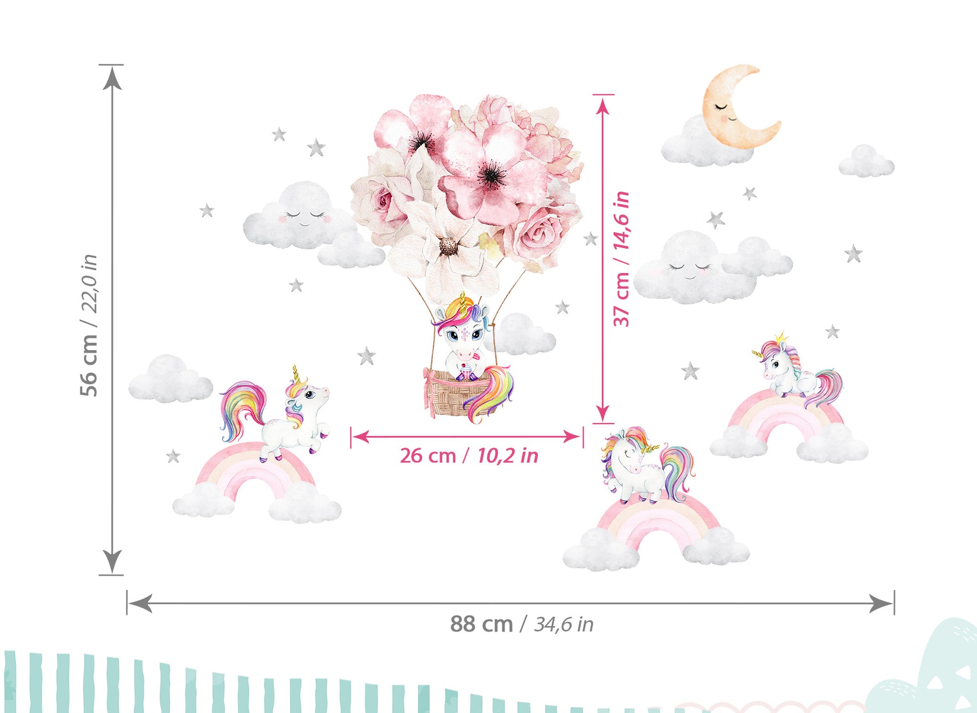 - 88 x 56 cm and the size of the hot air balloon is 26 x 37 cm