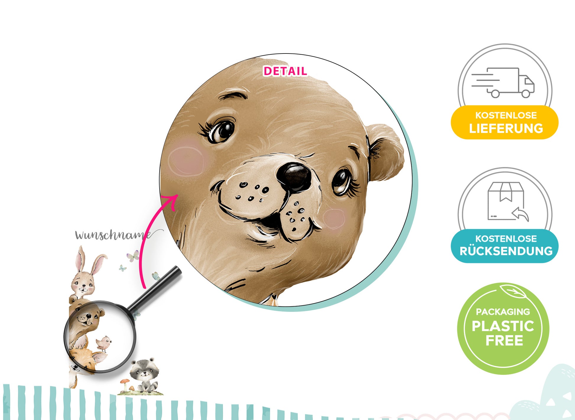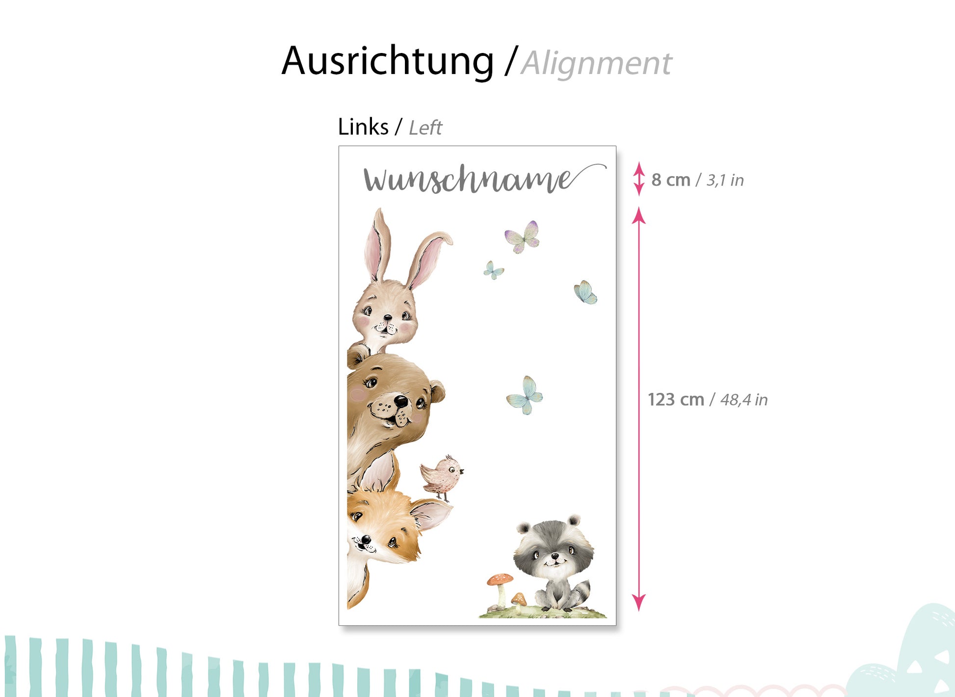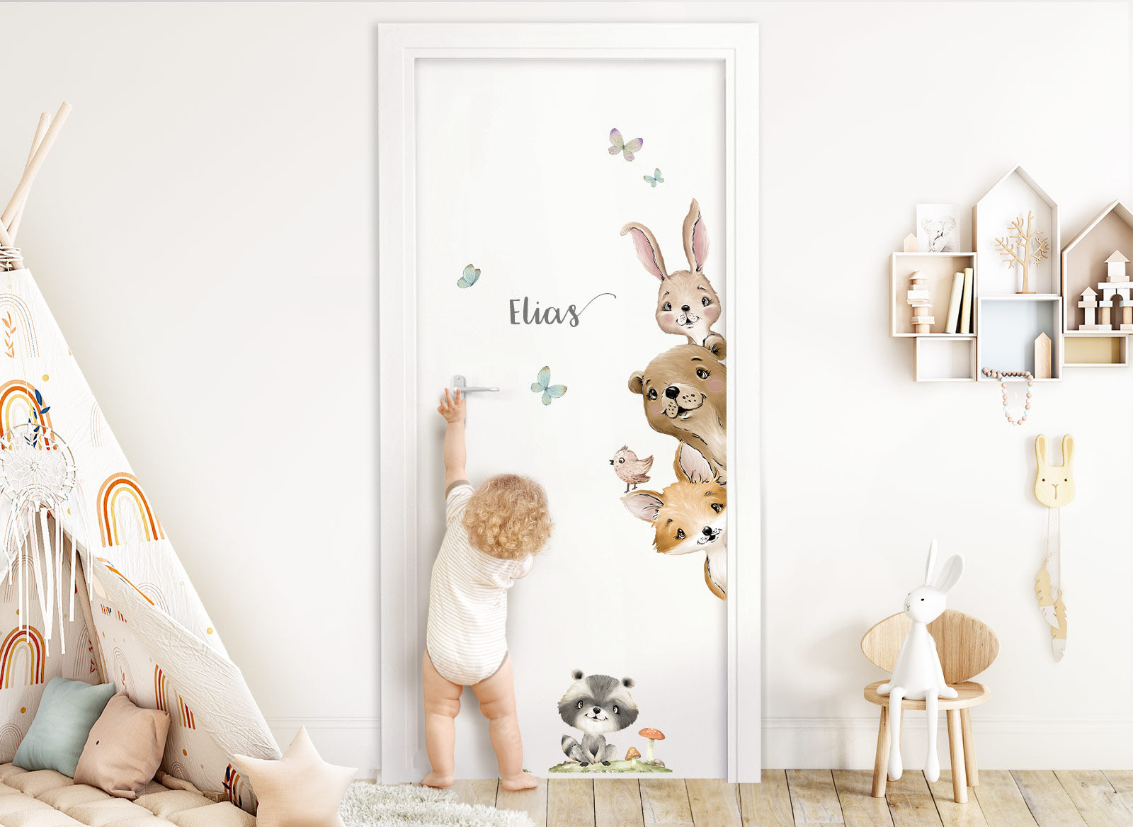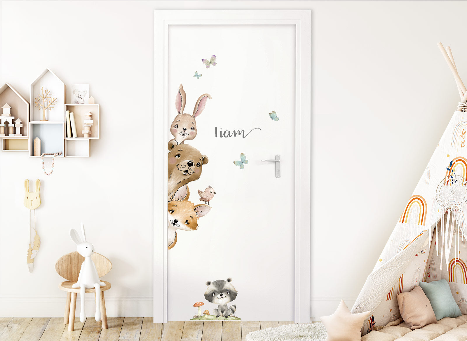 Wandtattoo Türsticker Waldtiere mit & ohne Wunschname