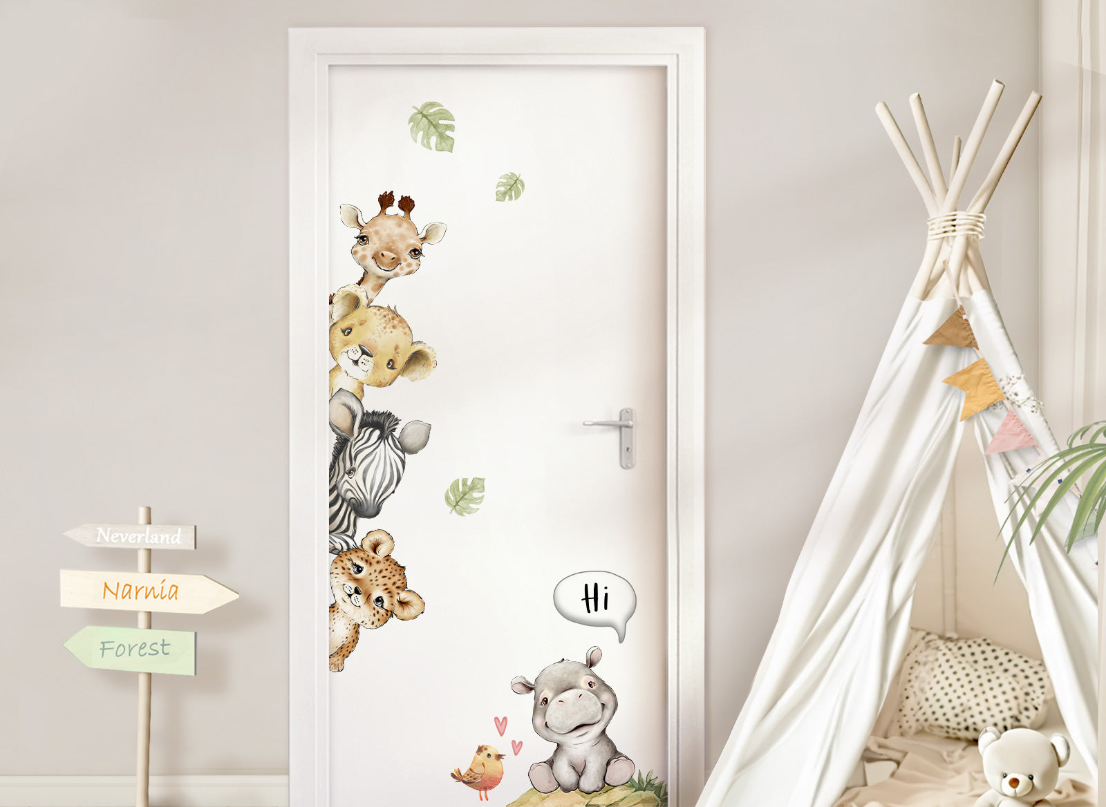 Klebekids Wandtattoo Türsticker Safaritiere mit & ohne Wunschname DK1155
