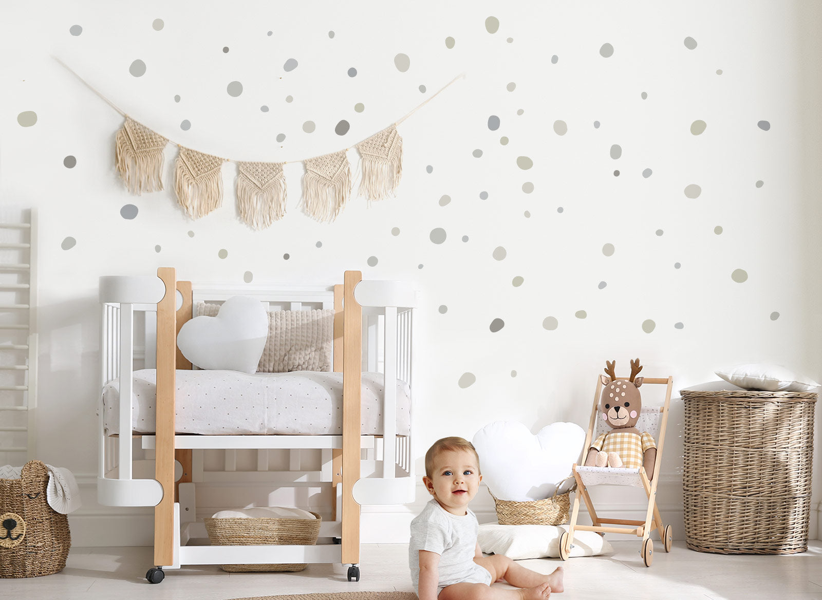Wandtattoo 92 Tupfen Grau Beige Blau DK1024