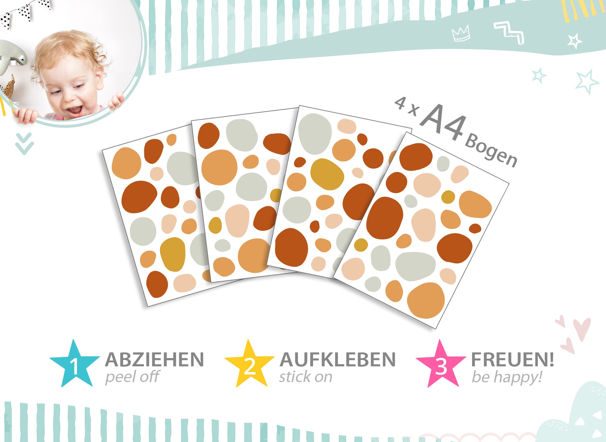 Wandtattoo 92 Tupfen Rot Beige Gelb DK1006