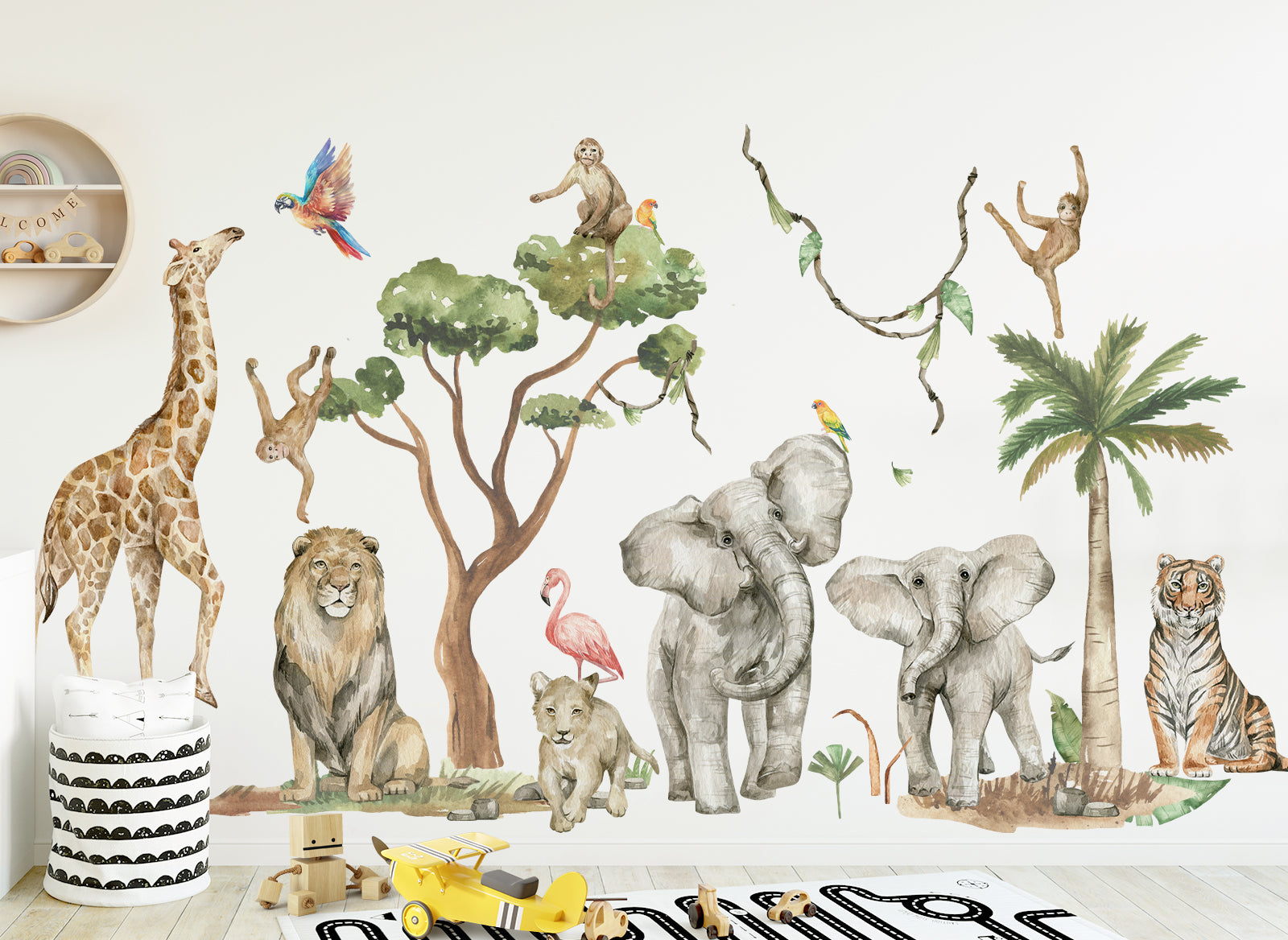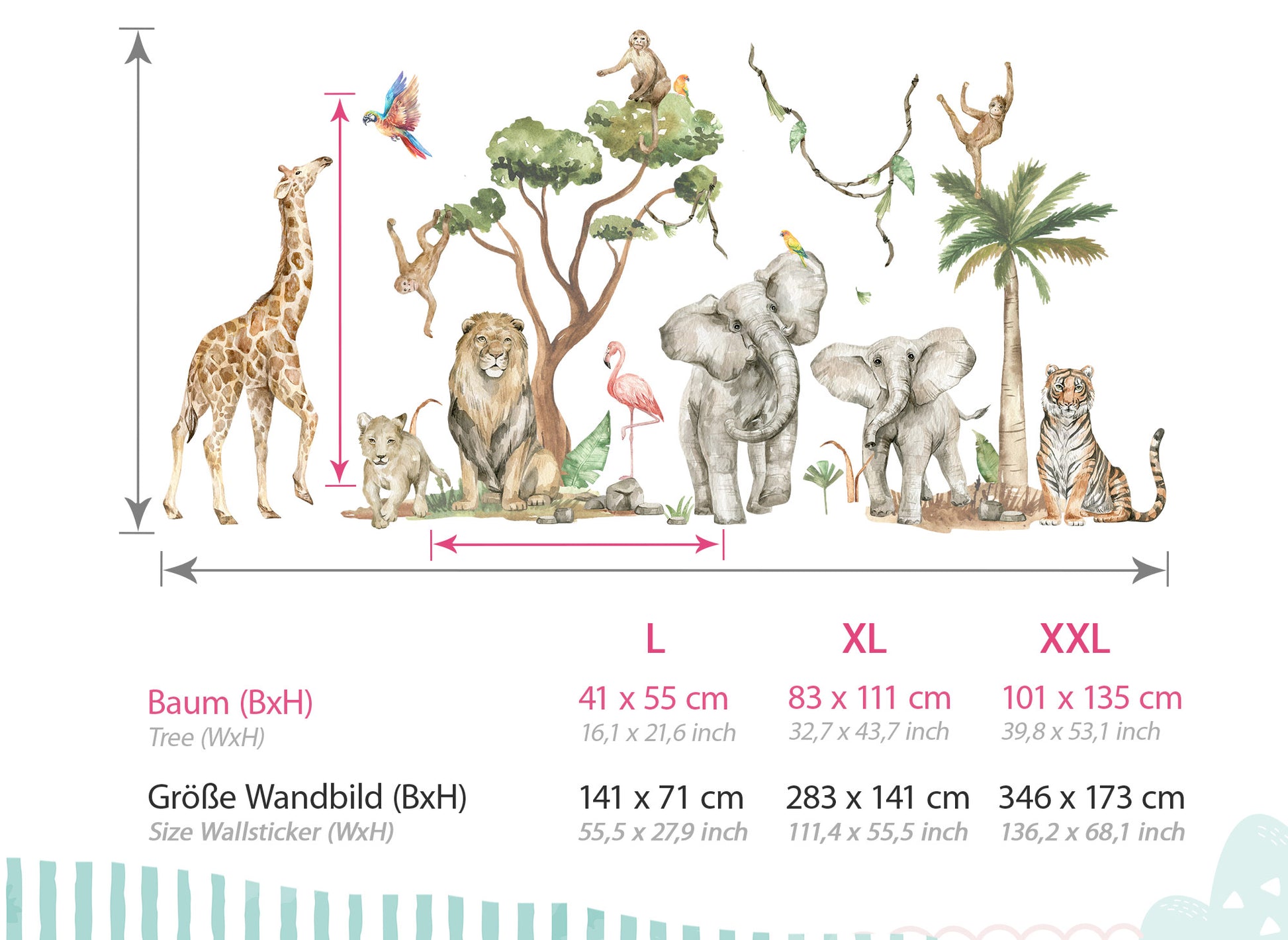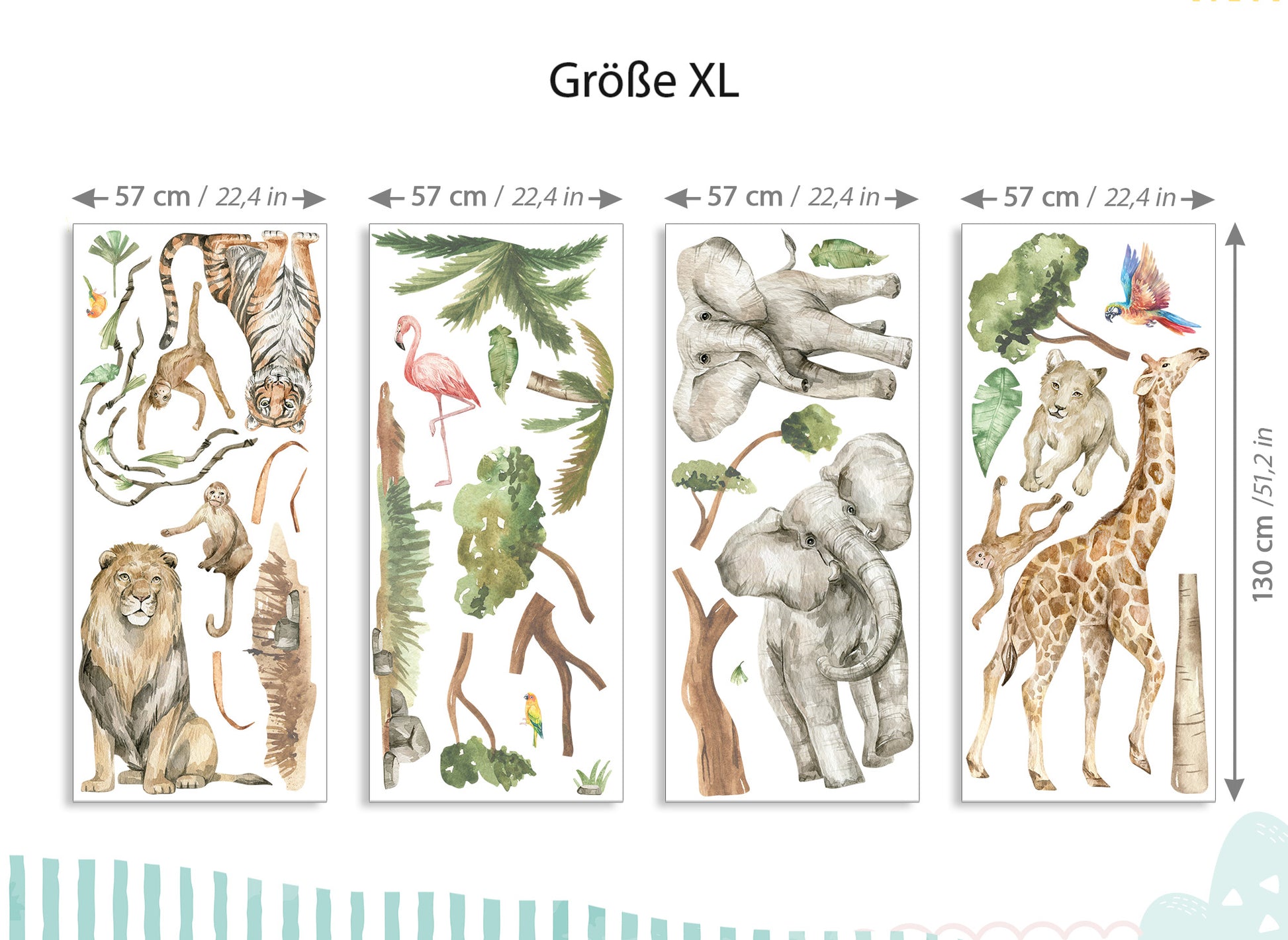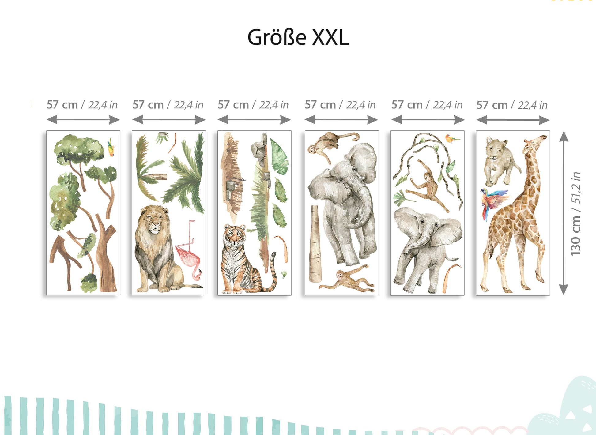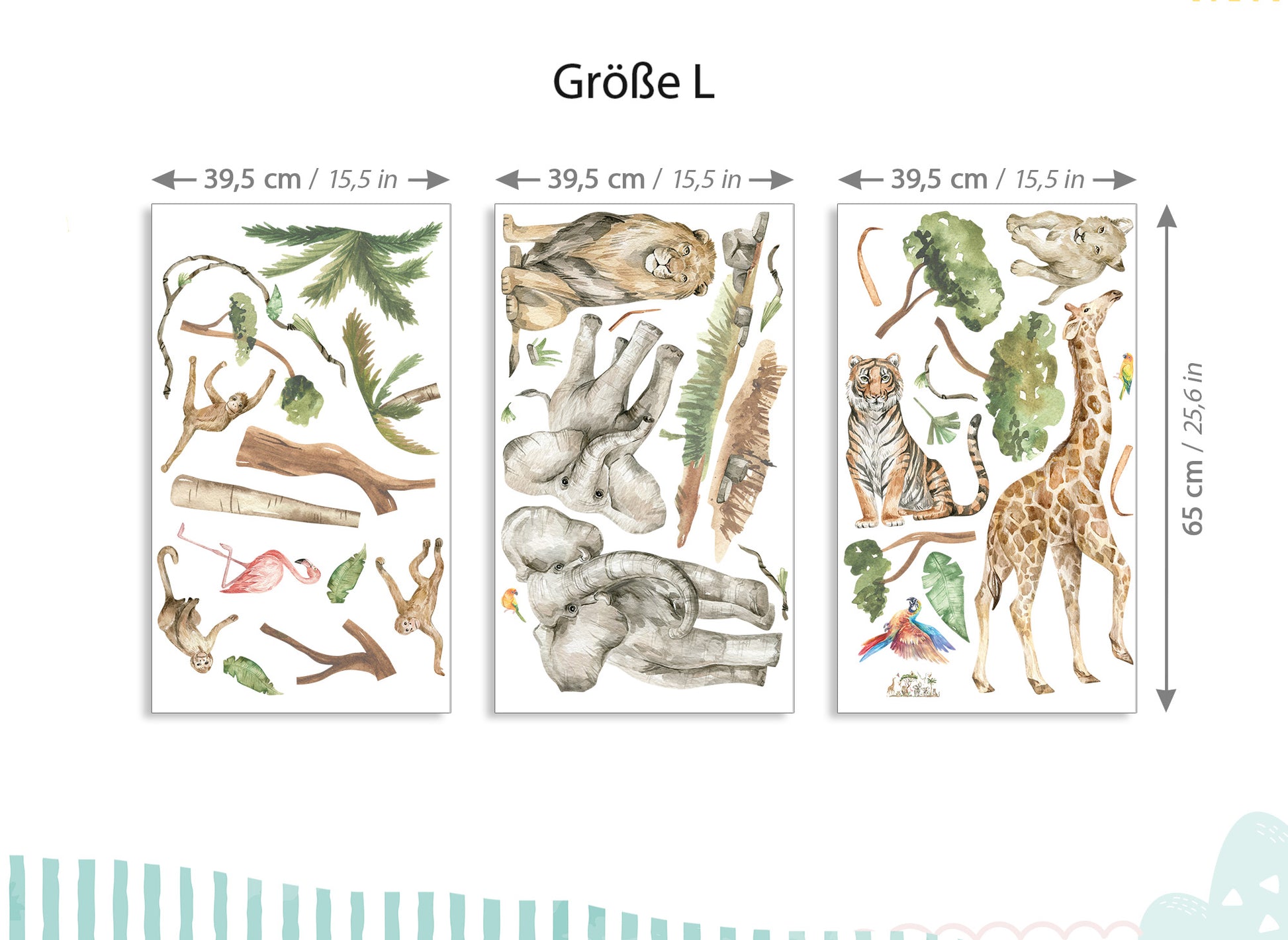Wandtattoo Dschungeltiere Elefant Löwe DK1050
