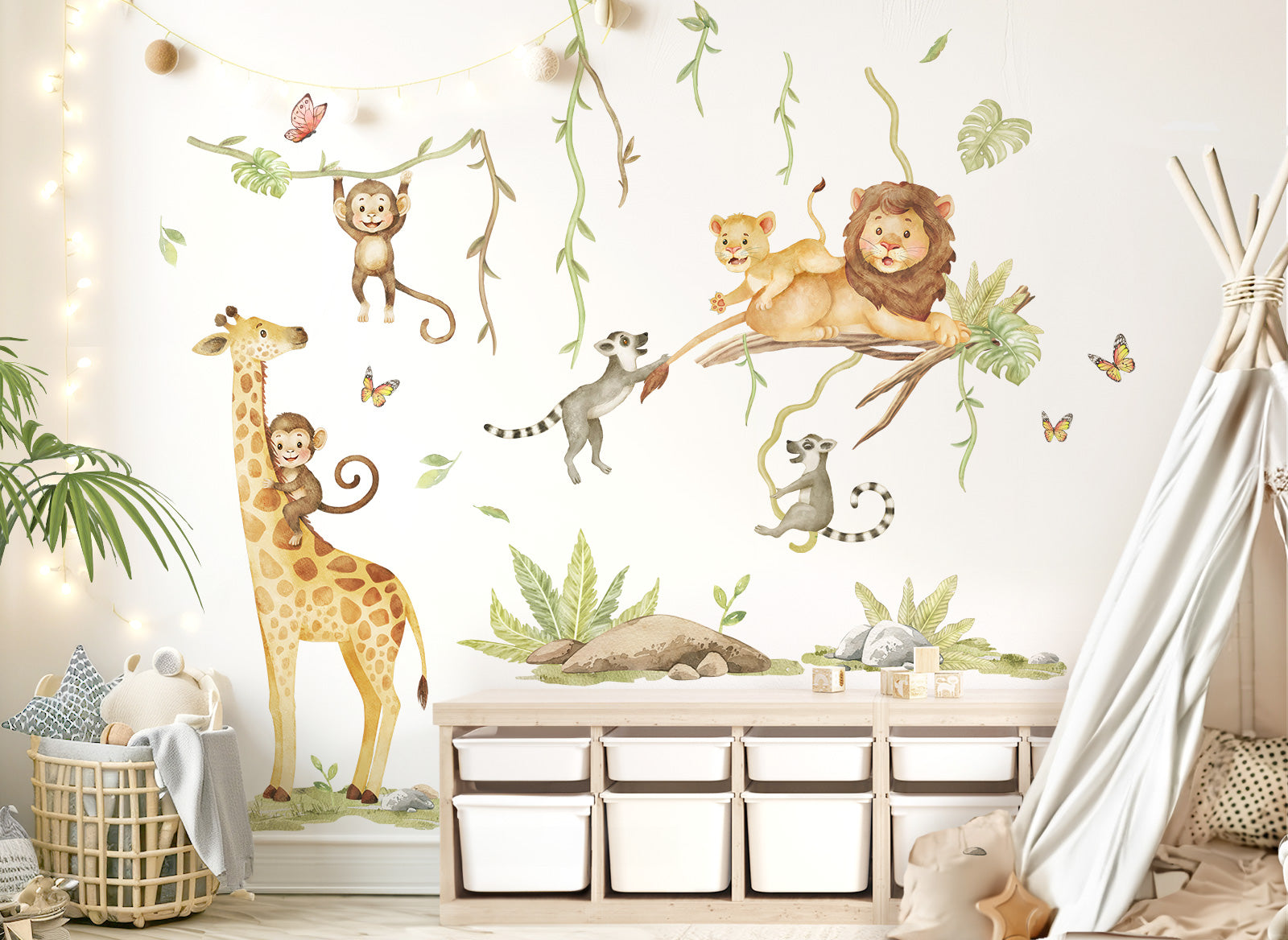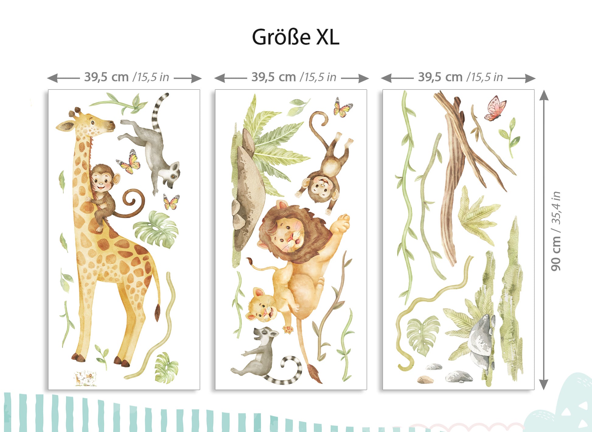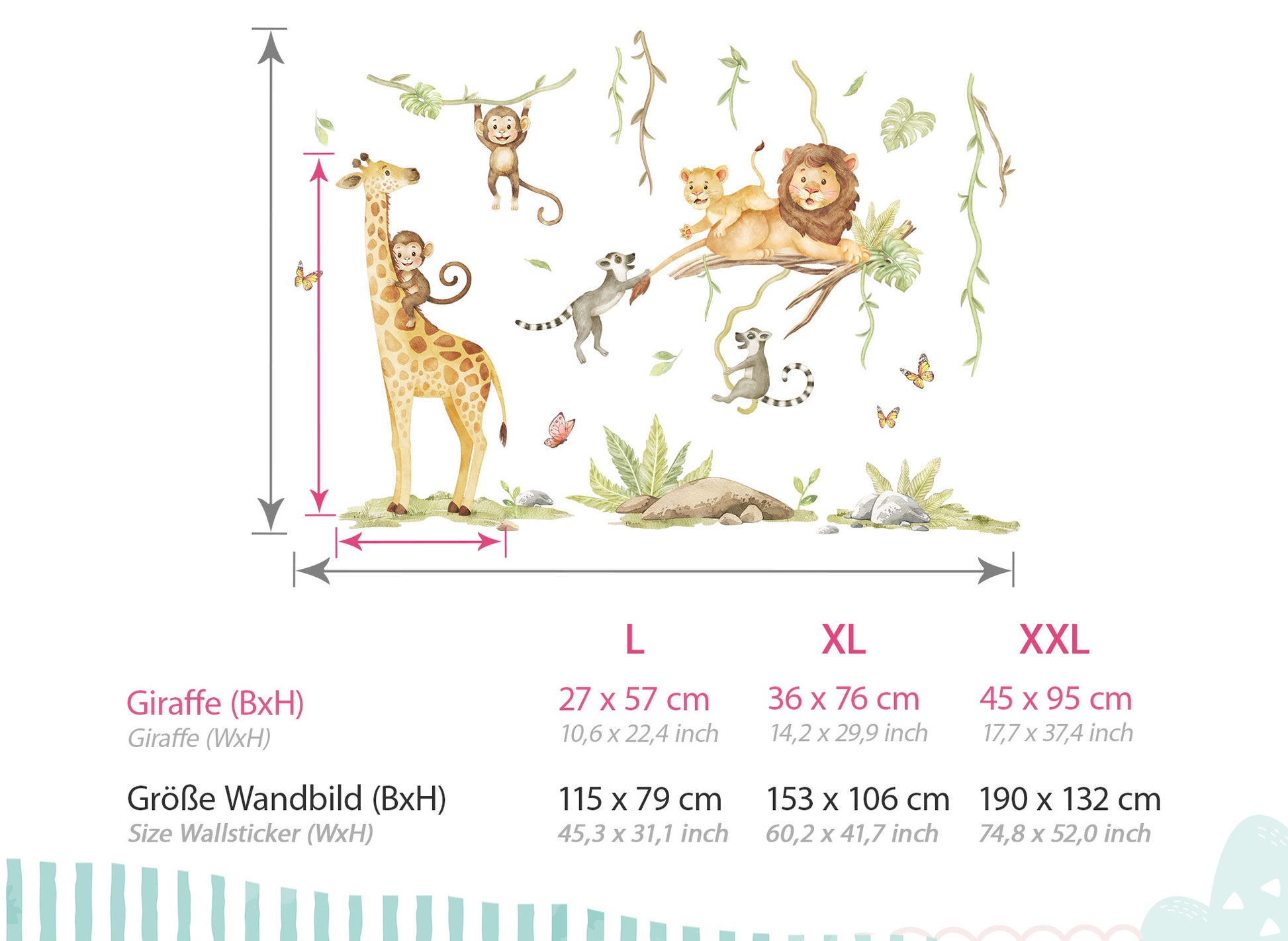 Wandtattoo Dschungeltiere Giraffe Löwe DK1148