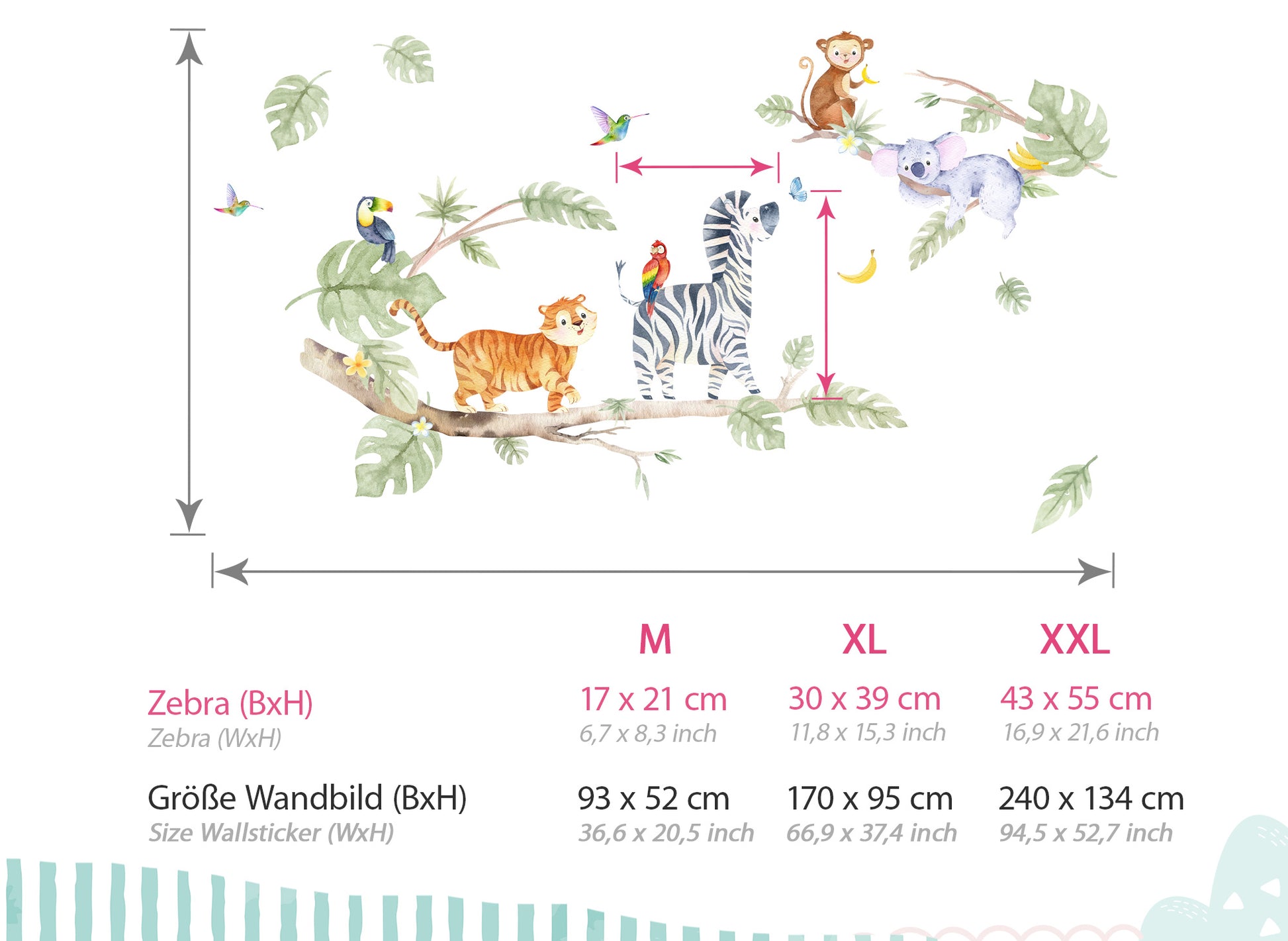 Wandtattoo Dschungeltiere Zebra Tiger DK1107