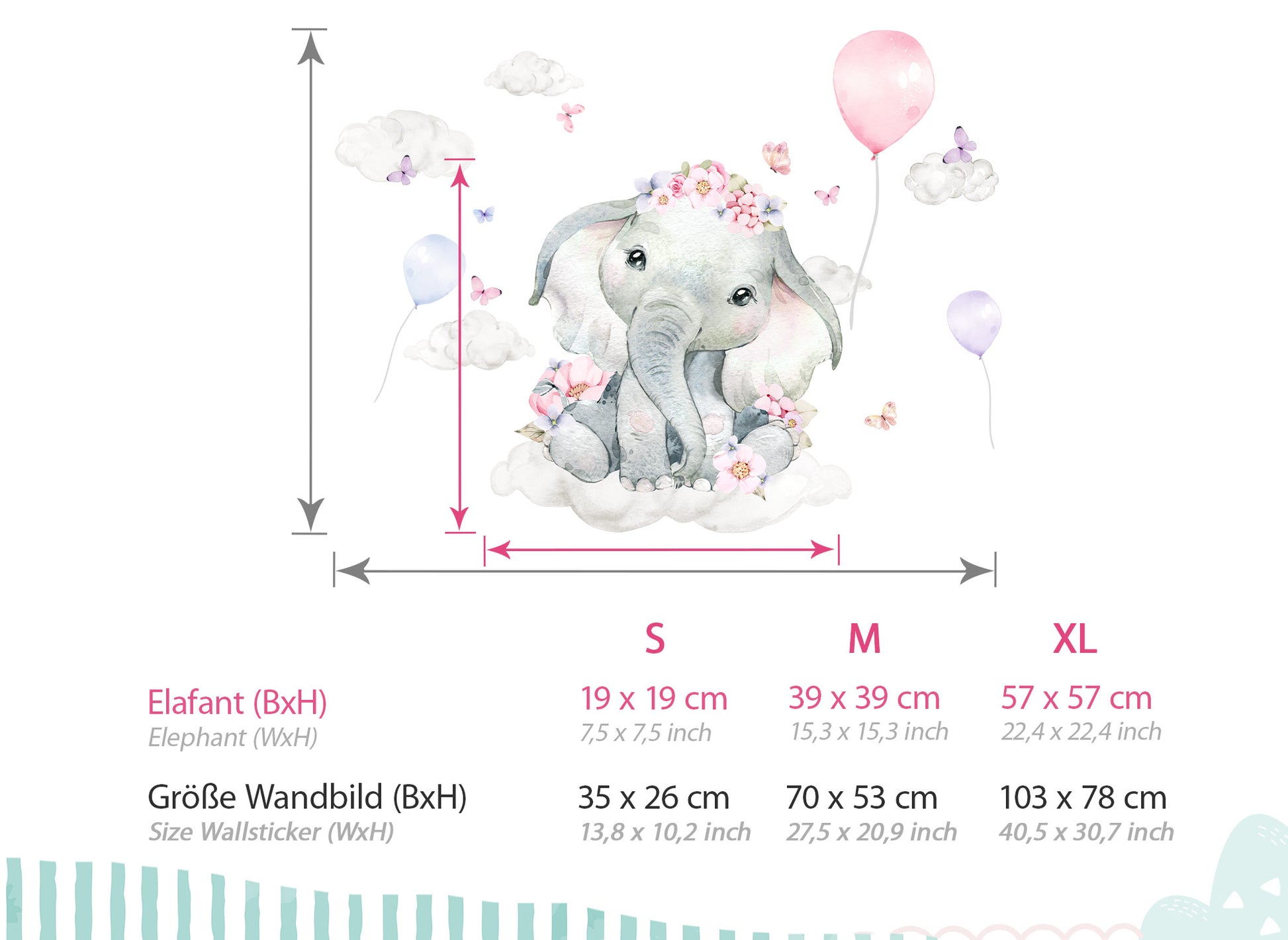 - M - 70 x 53 cm und der Elefant hat eine Größe von 39 x 39 cm