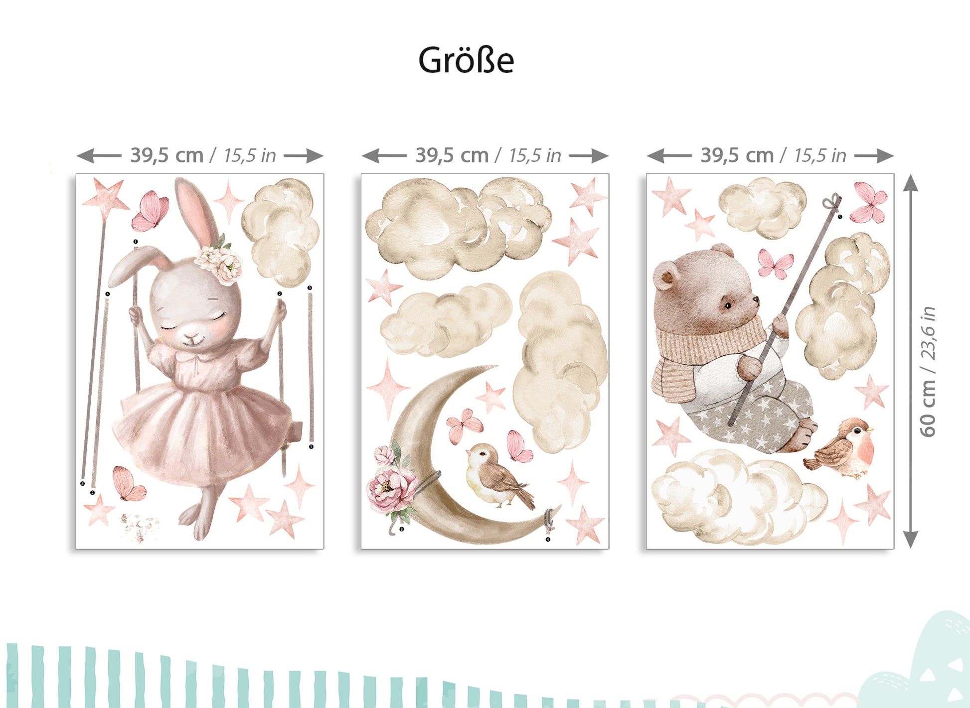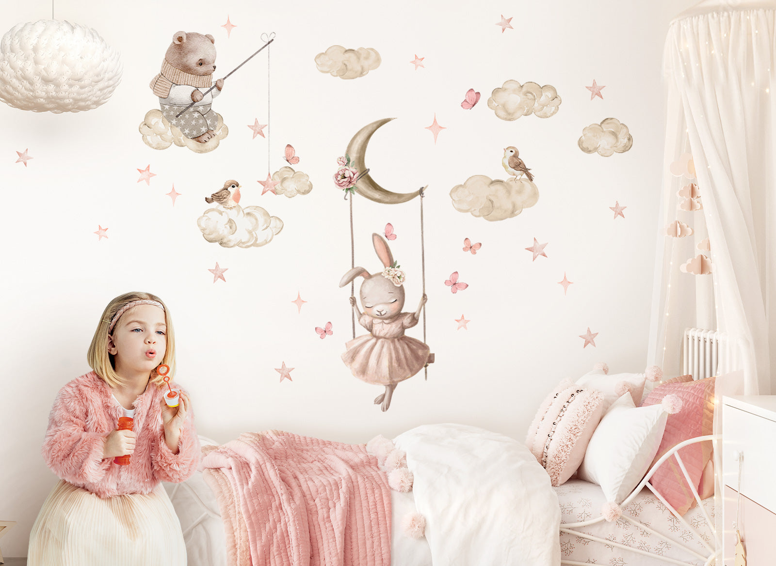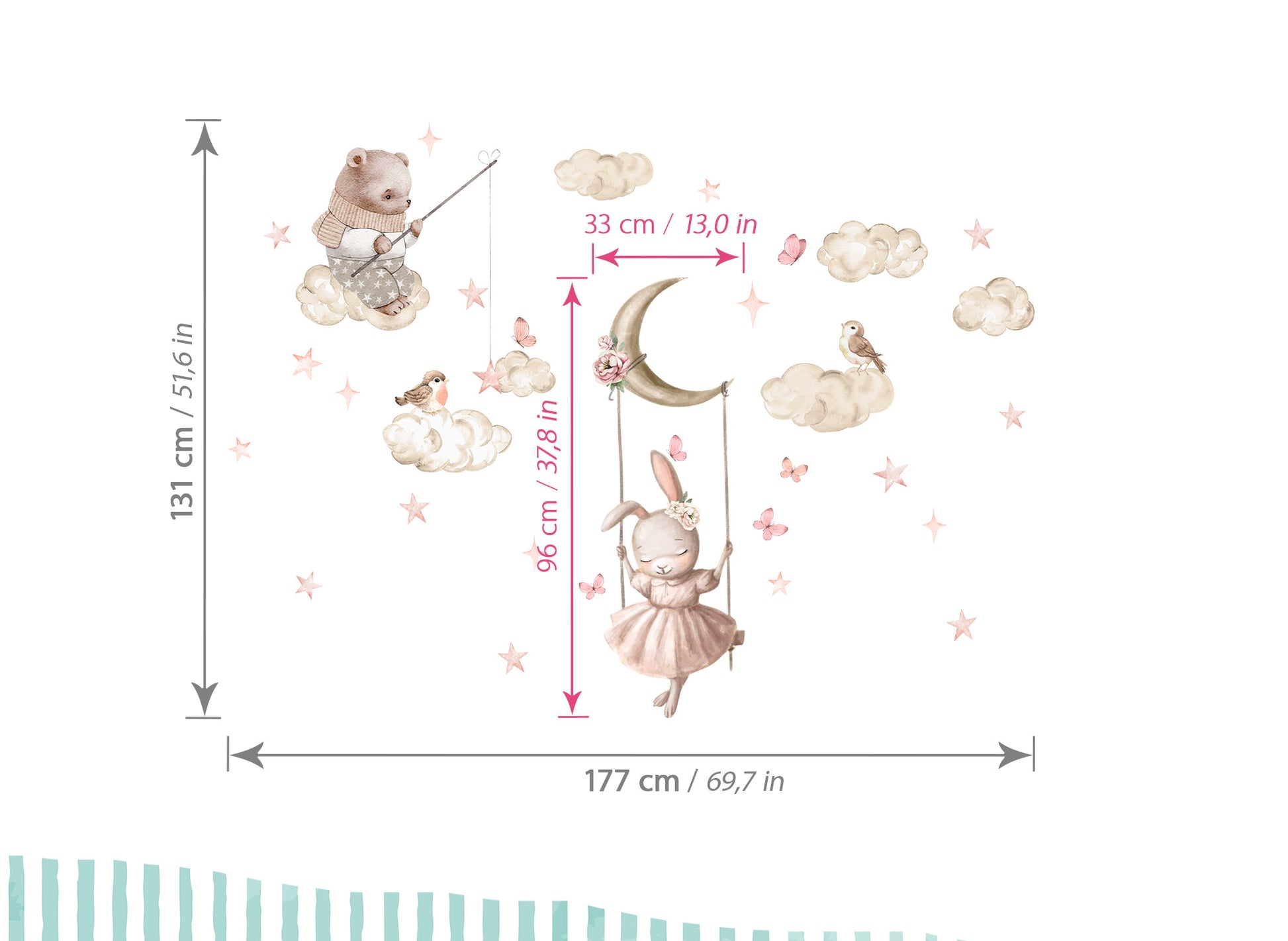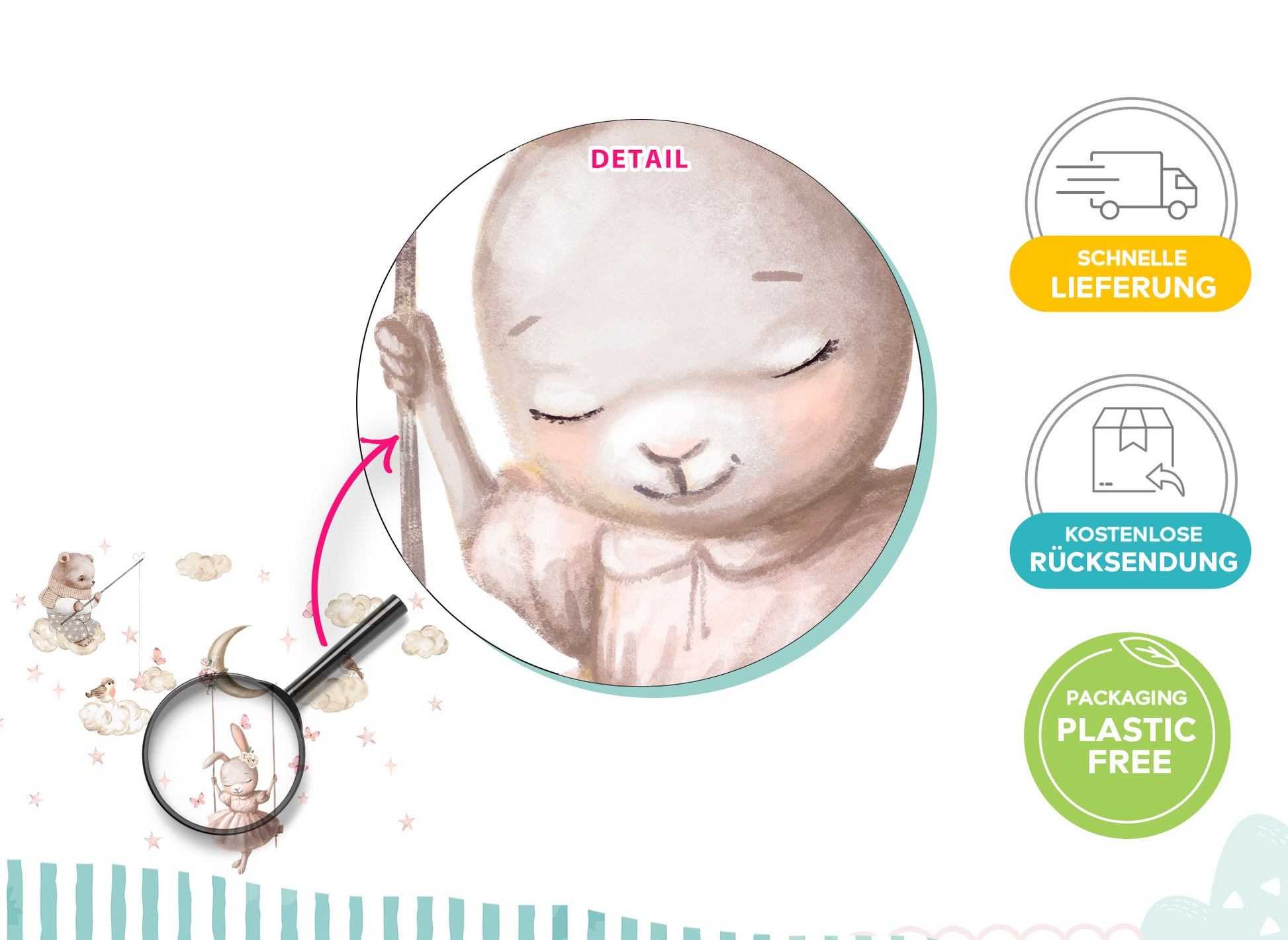 Wandtattoo Hase auf Schaukel und Bär DK1126