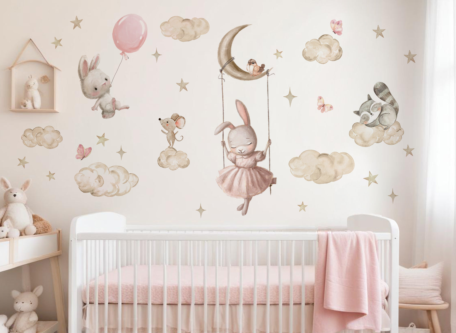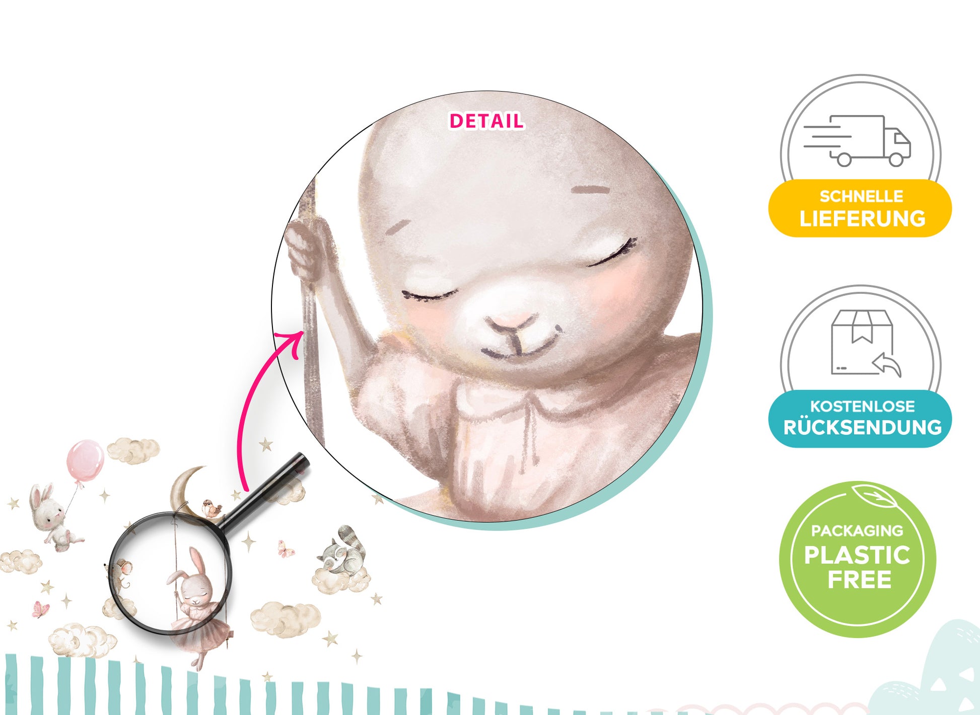 Wandtattoo Hase auf Schaukel und Maus DK1127