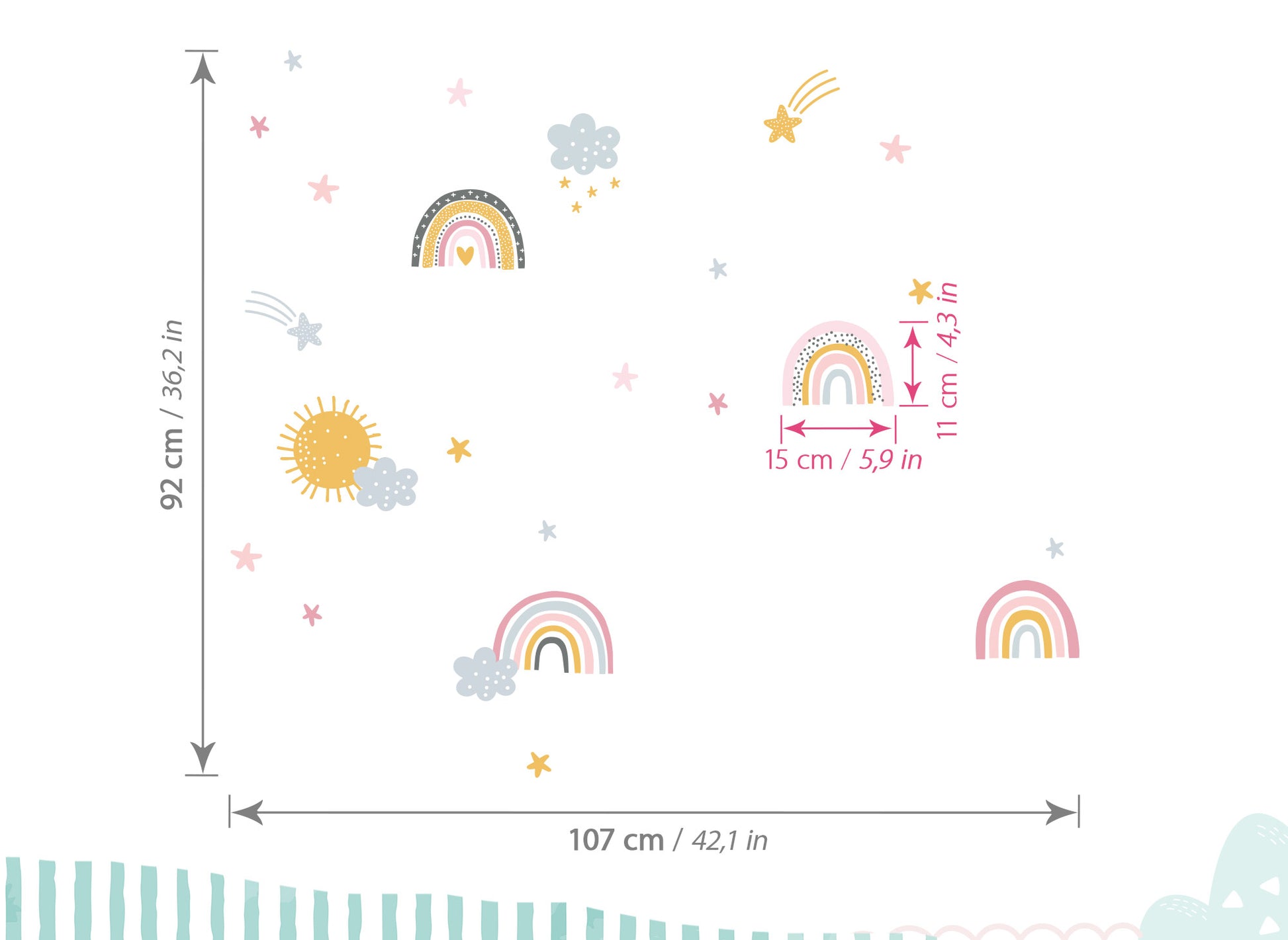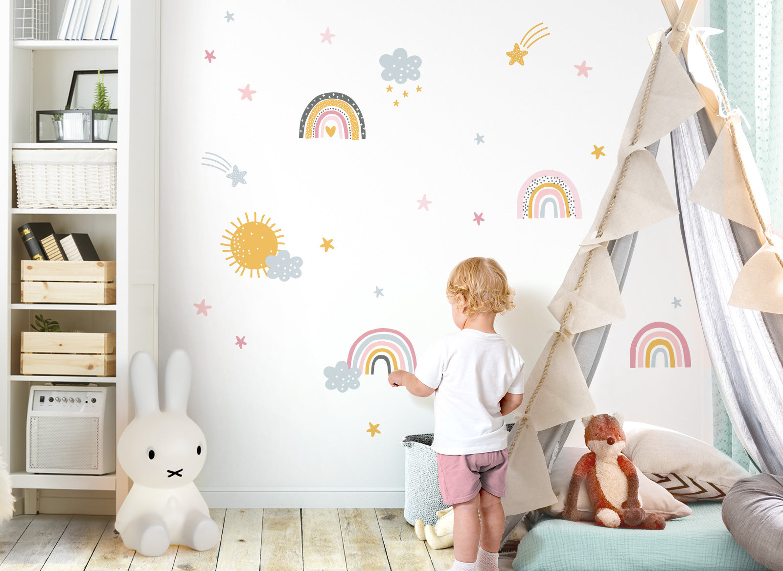 Wandtattoo Regenbogen mit Sternen Wolken & Sonne