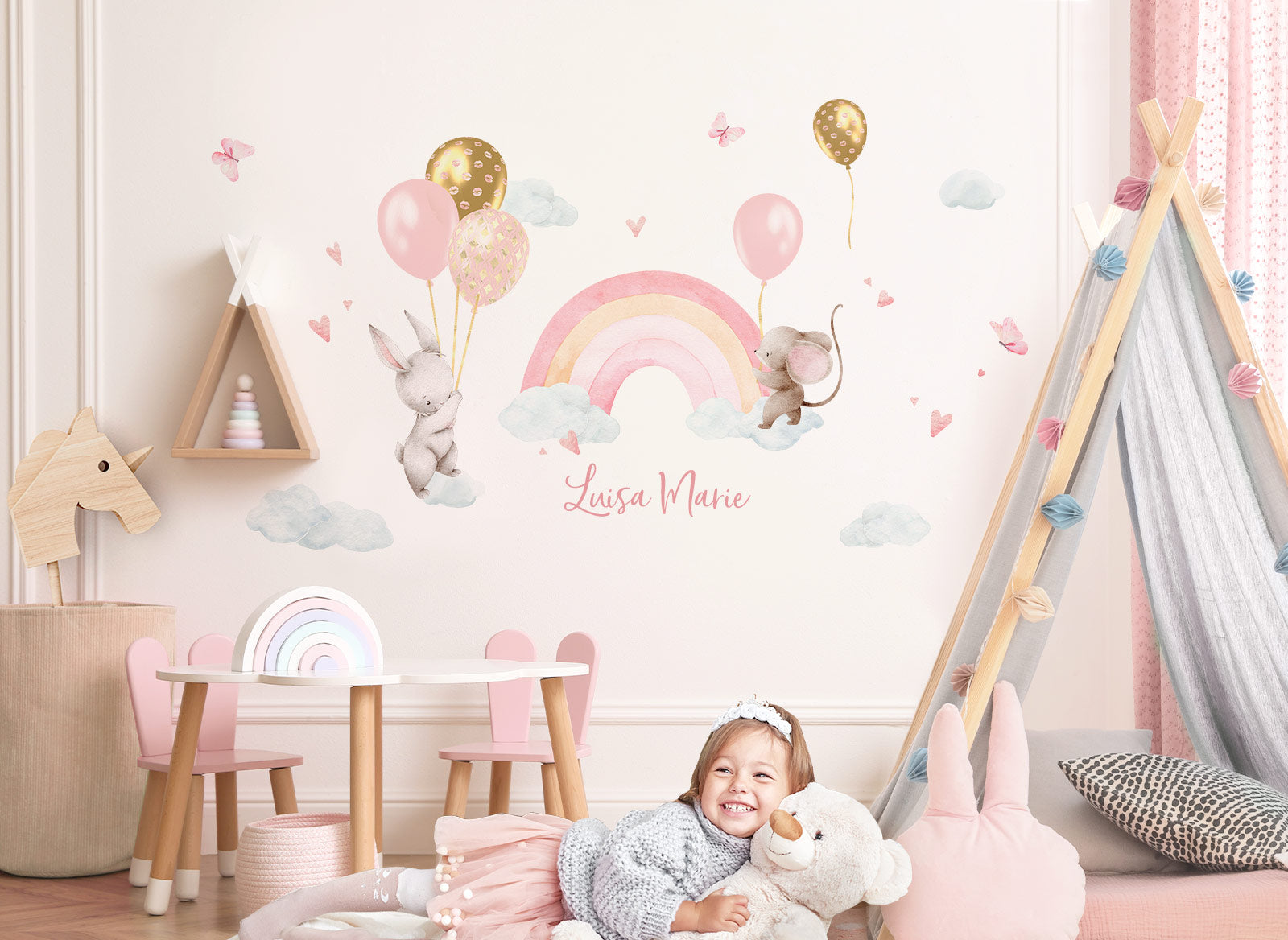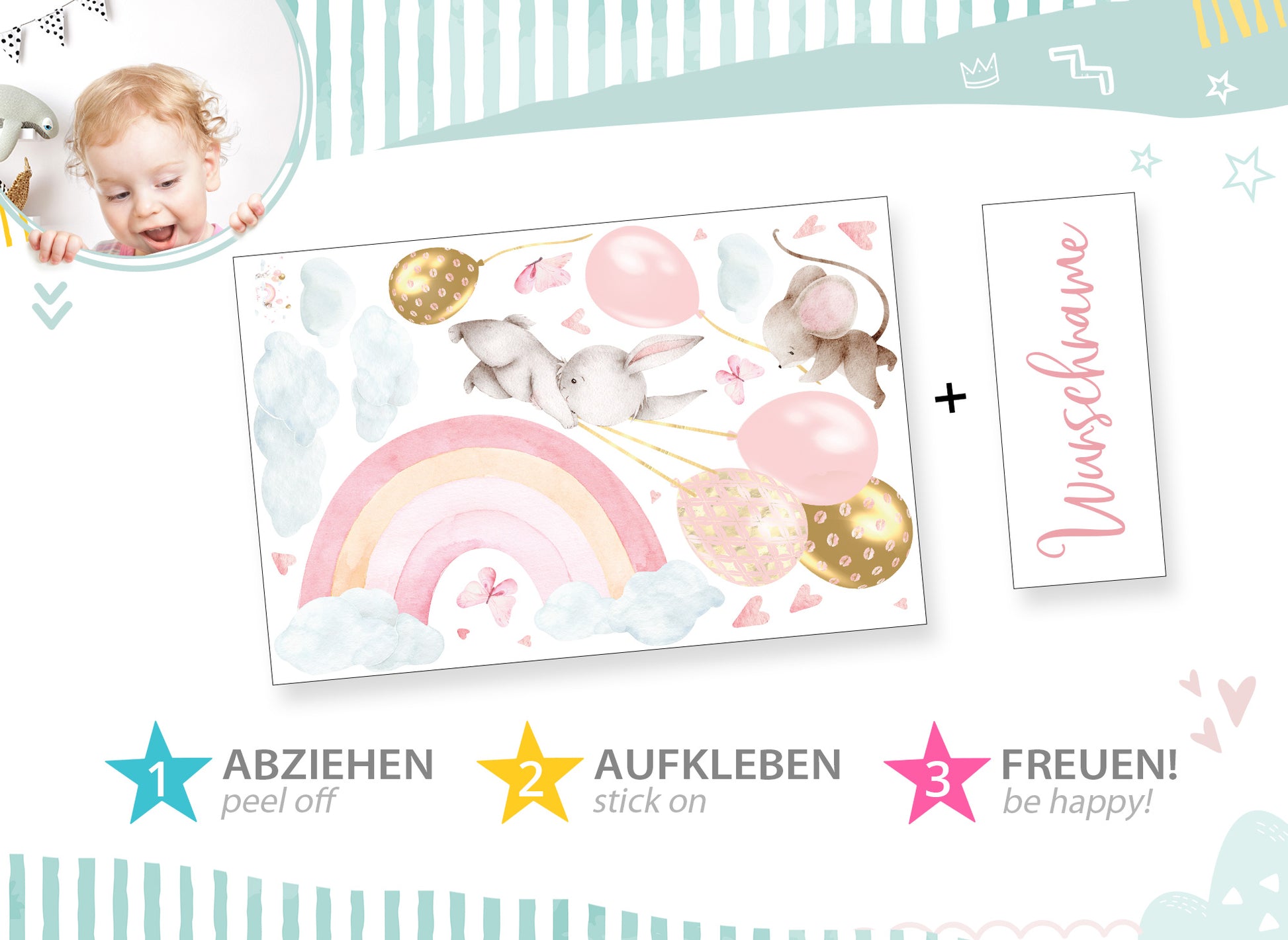 Wandtattoo Regenbogen Tiere personalisiert DK1104