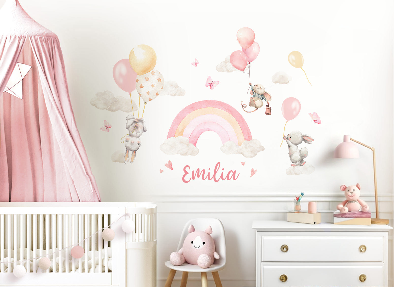 Wandtattoo Regenbogen Tiere personalisiert DK1151