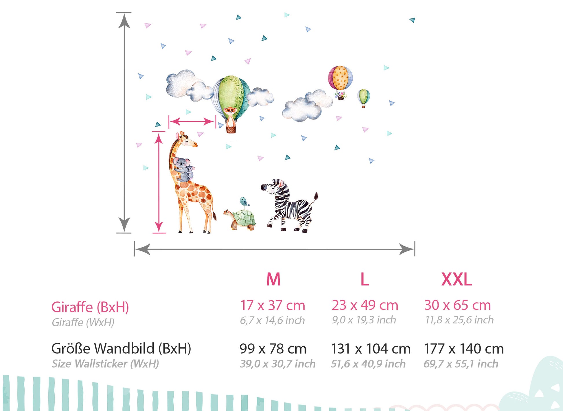 - M - 99 x 78 cm und die Giraffe hat eine Größe von von 17 x 37 cm