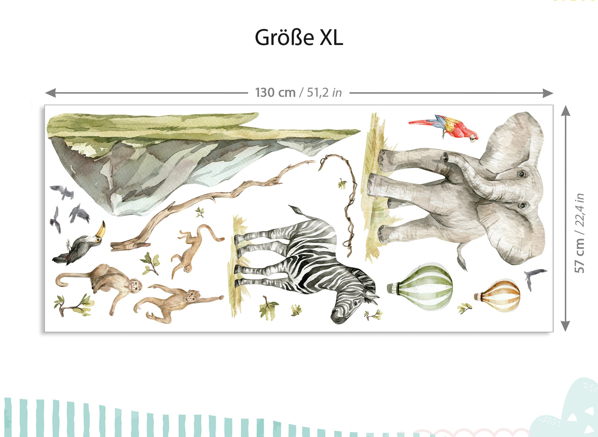 - XXL - 190 x 126 cm und der Elefant hat eine Größe von 58 x 65 cm