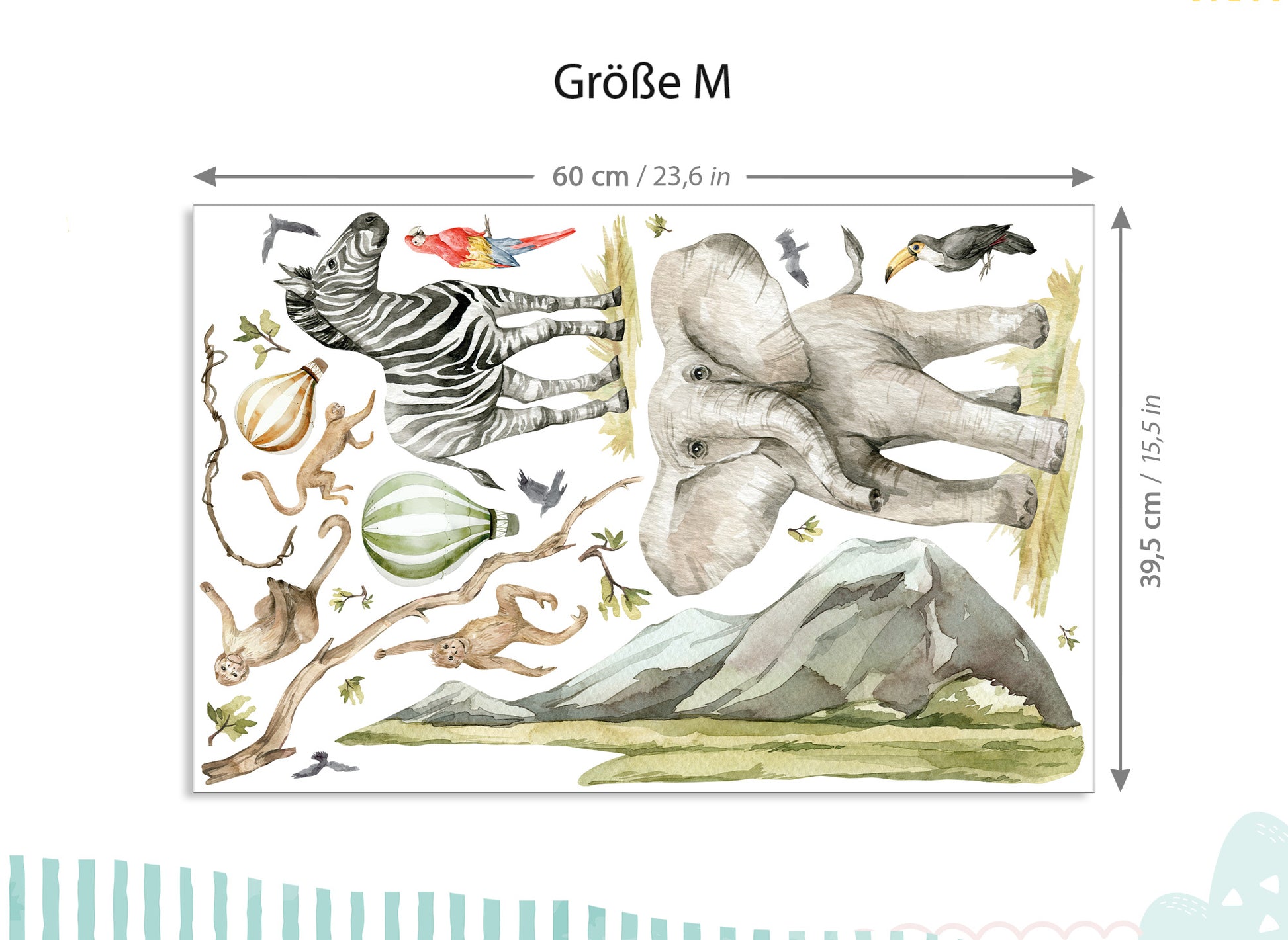- M - 87 x 58 cm und der Elefant hat eine Größe von 27 x 30 cm