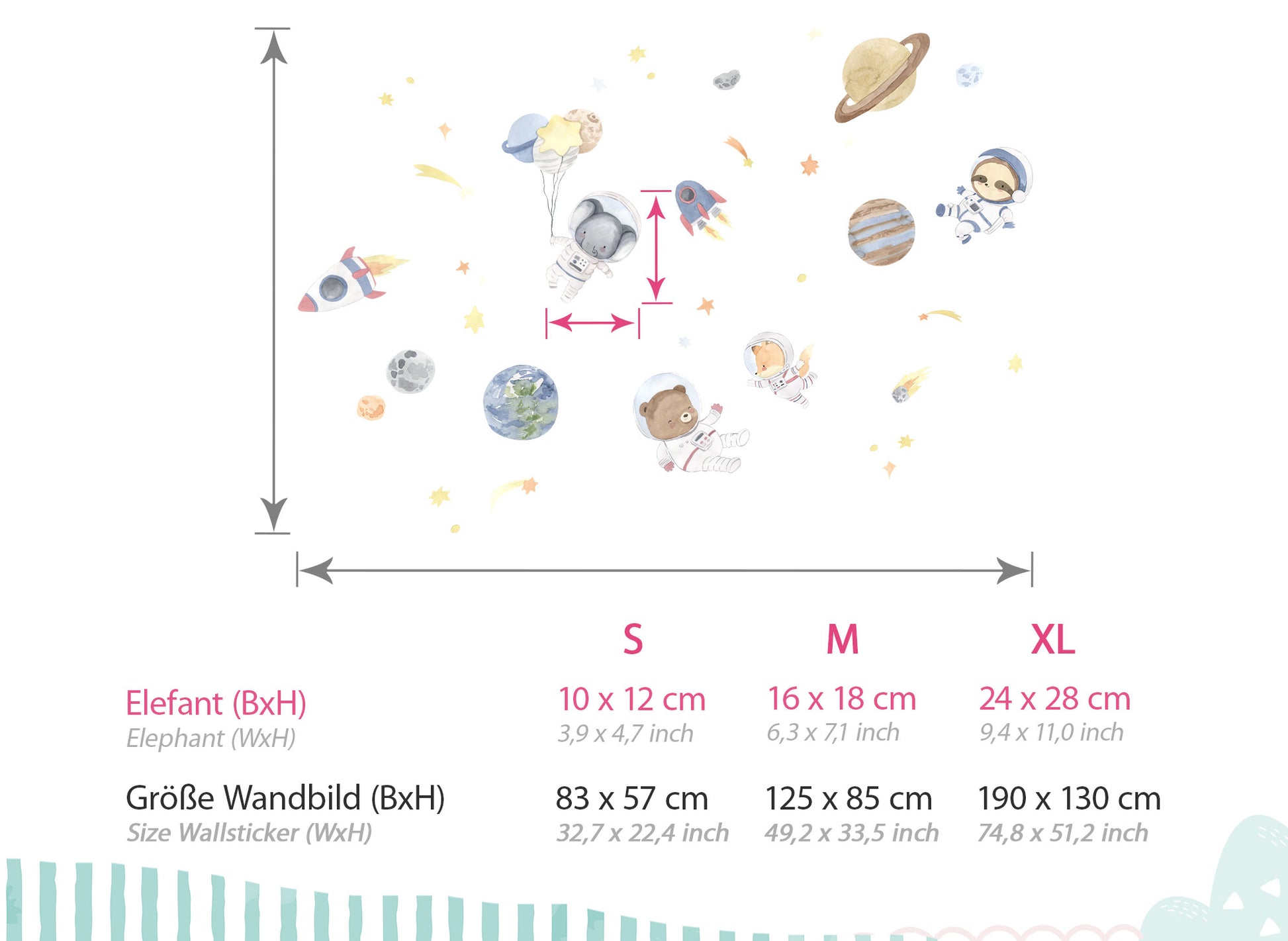- S - 35 x 26 cm und der Elefant hat eine Größe von 19 x 19 cm