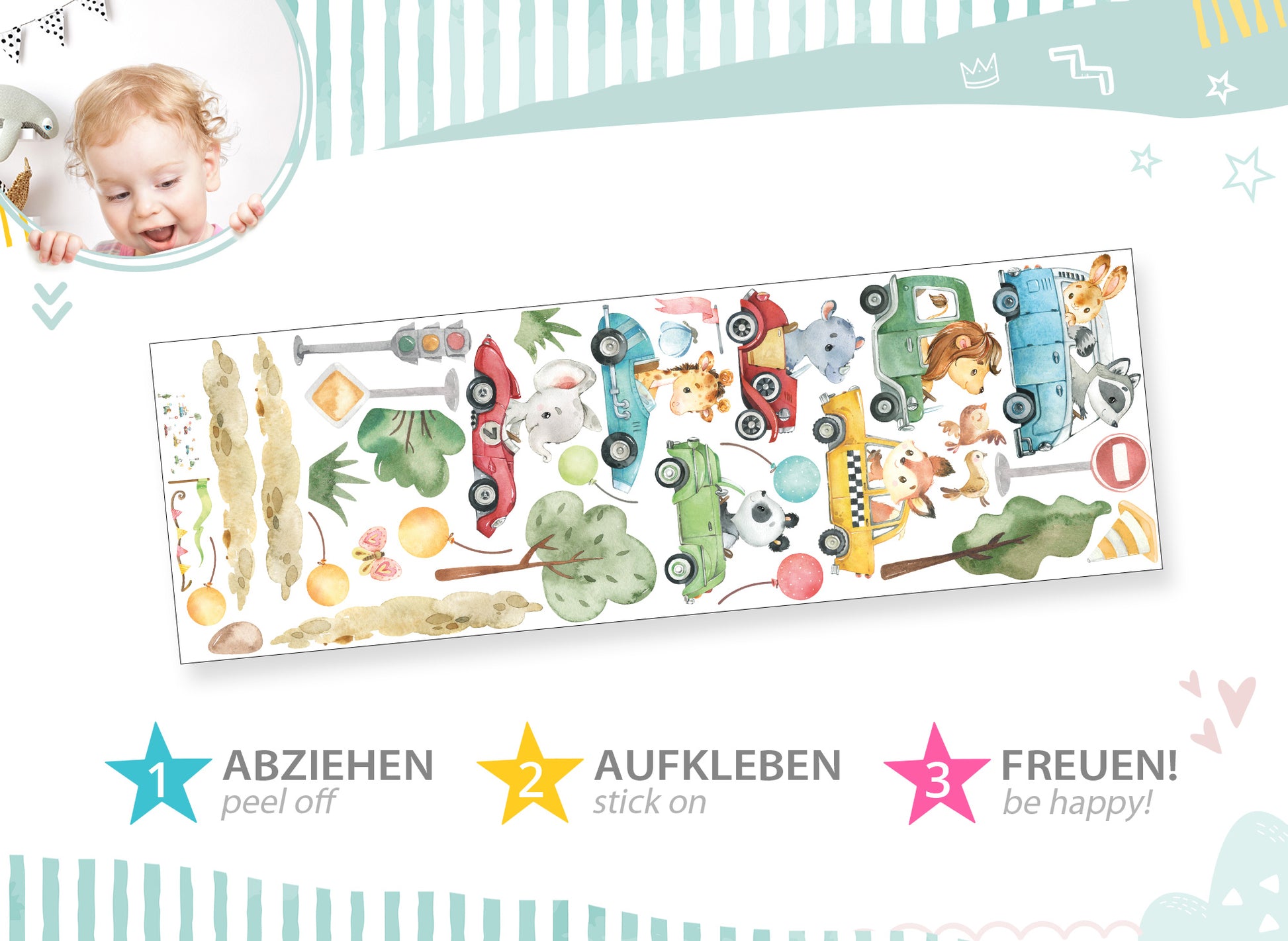 Wandtattoo Tiere mit Autos