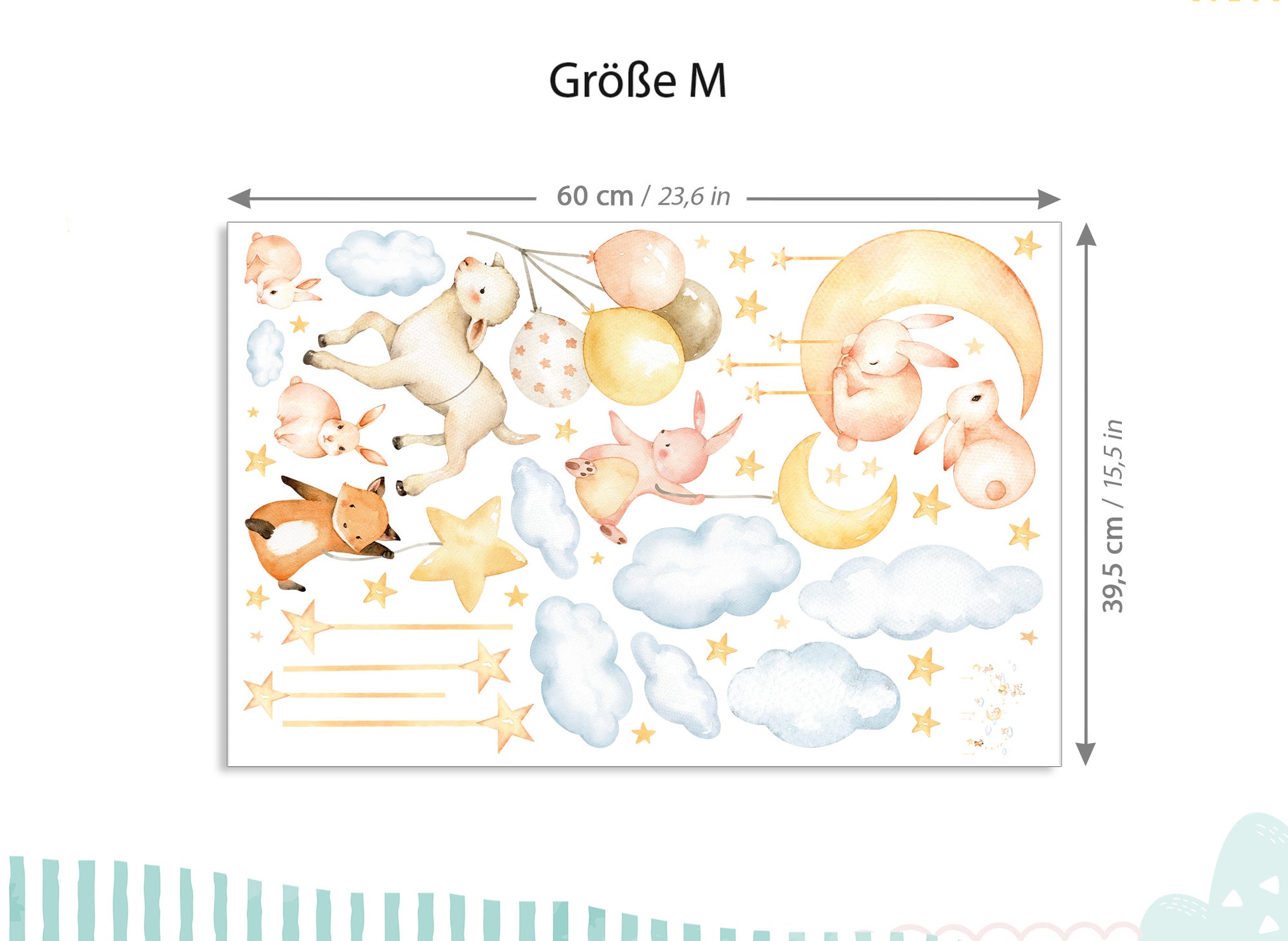 - M - 116 x 79 cm und das Schaf mit Ballons hat eine Größe von 16 x 32 cm