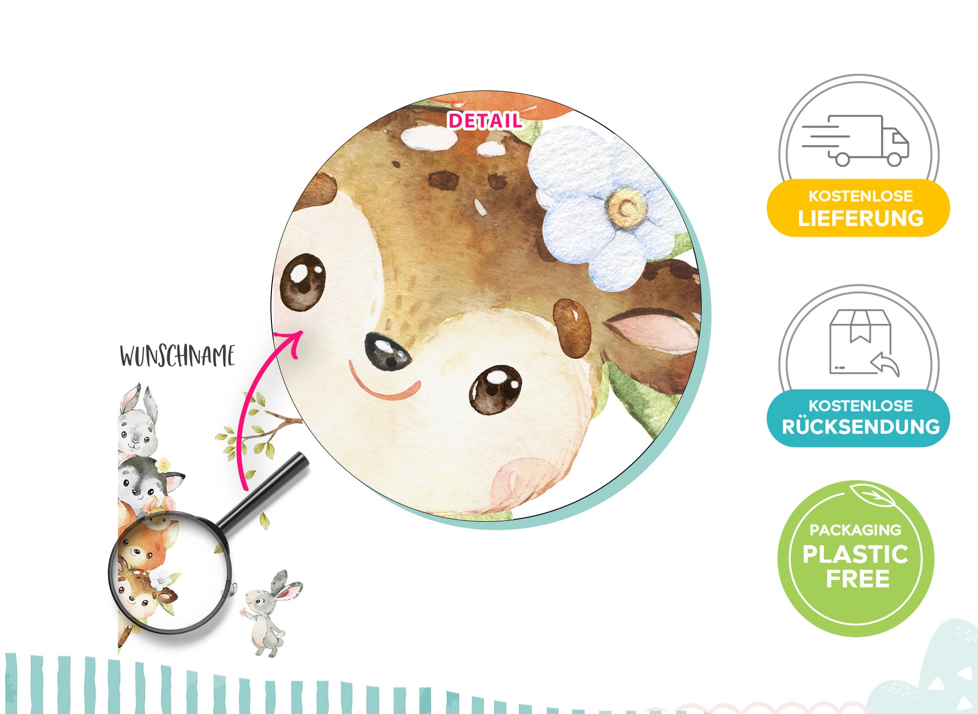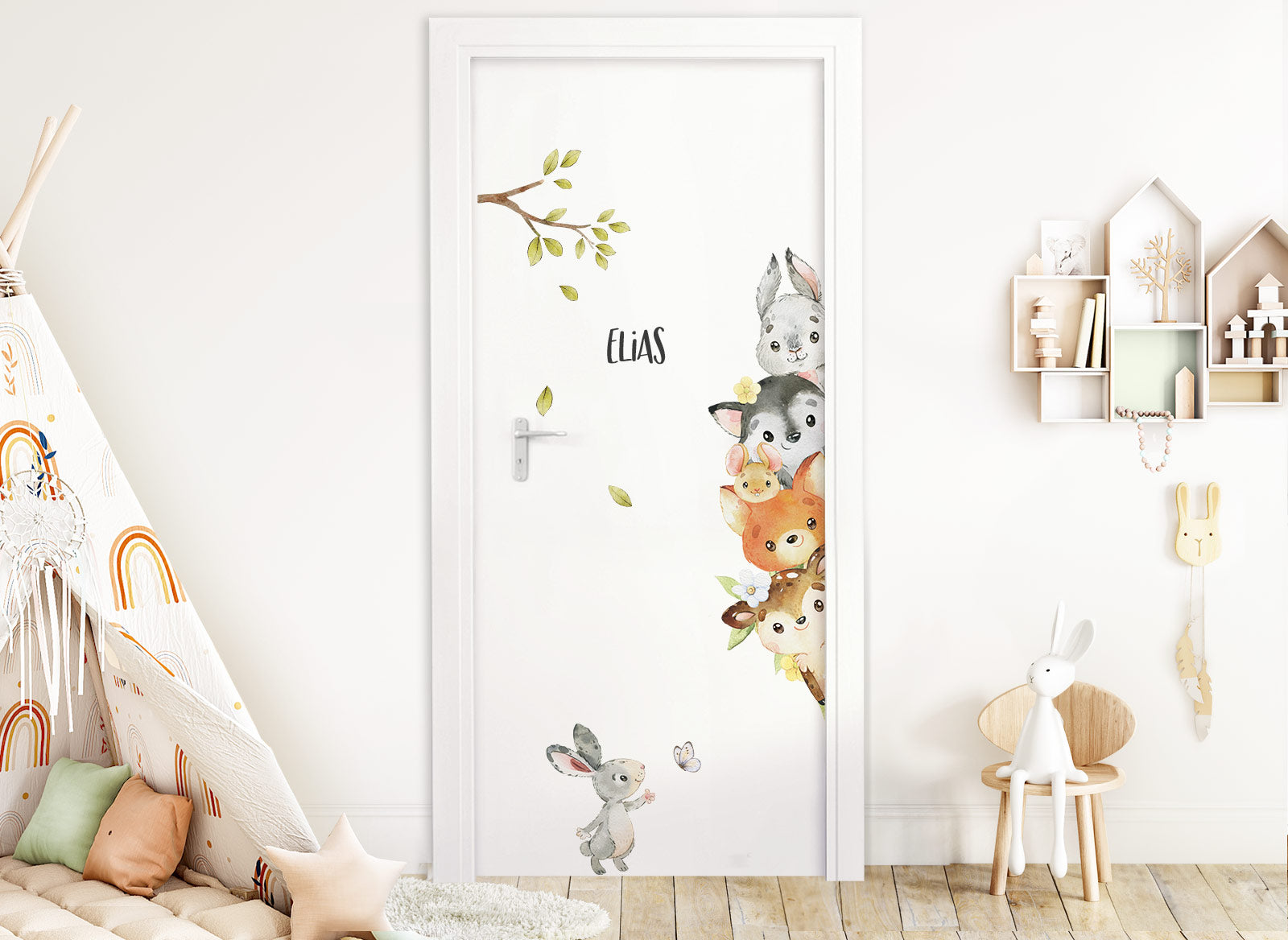 Wandtattoo Türsticker Waldtiere mit & ohne Wunschname