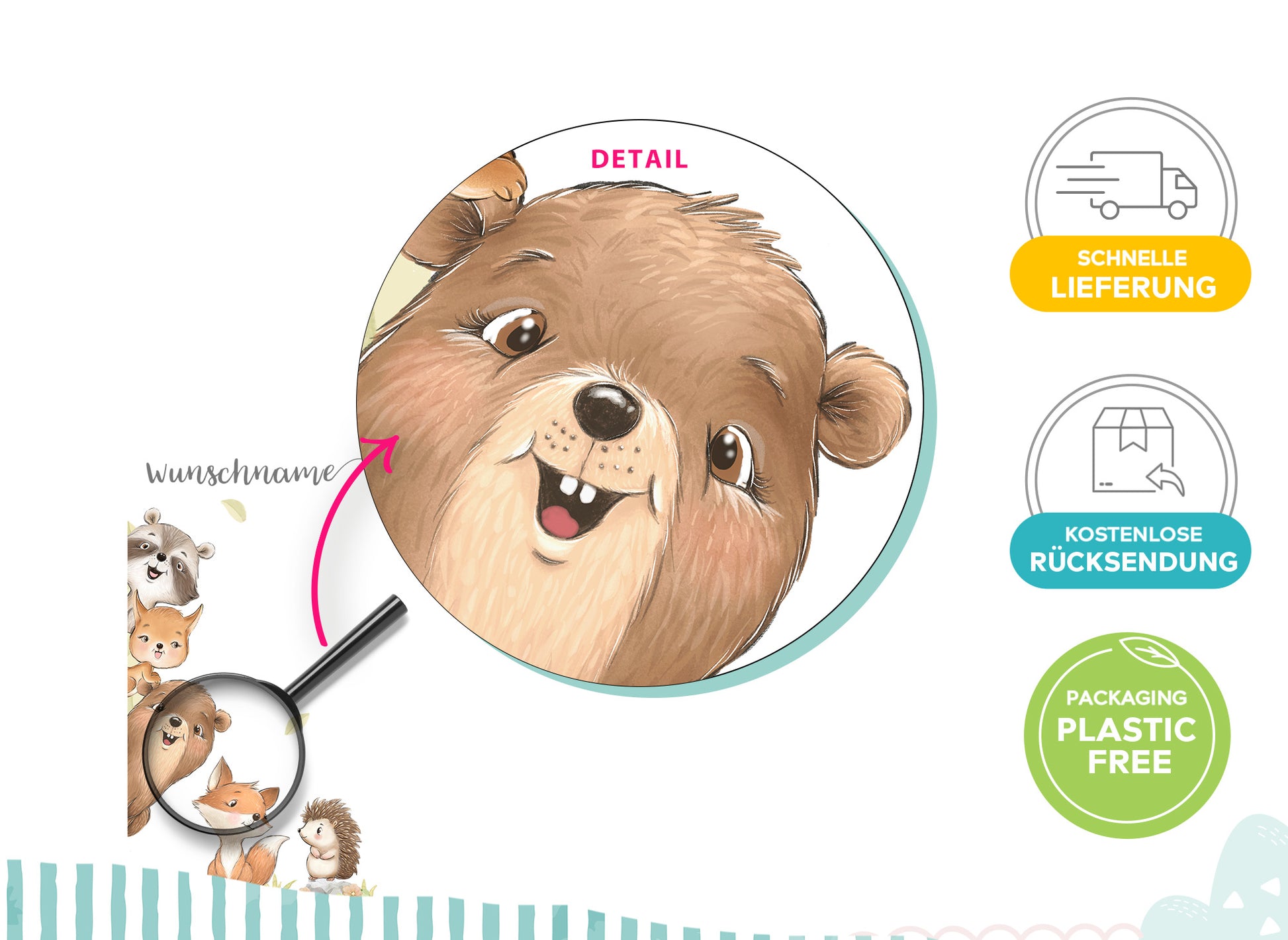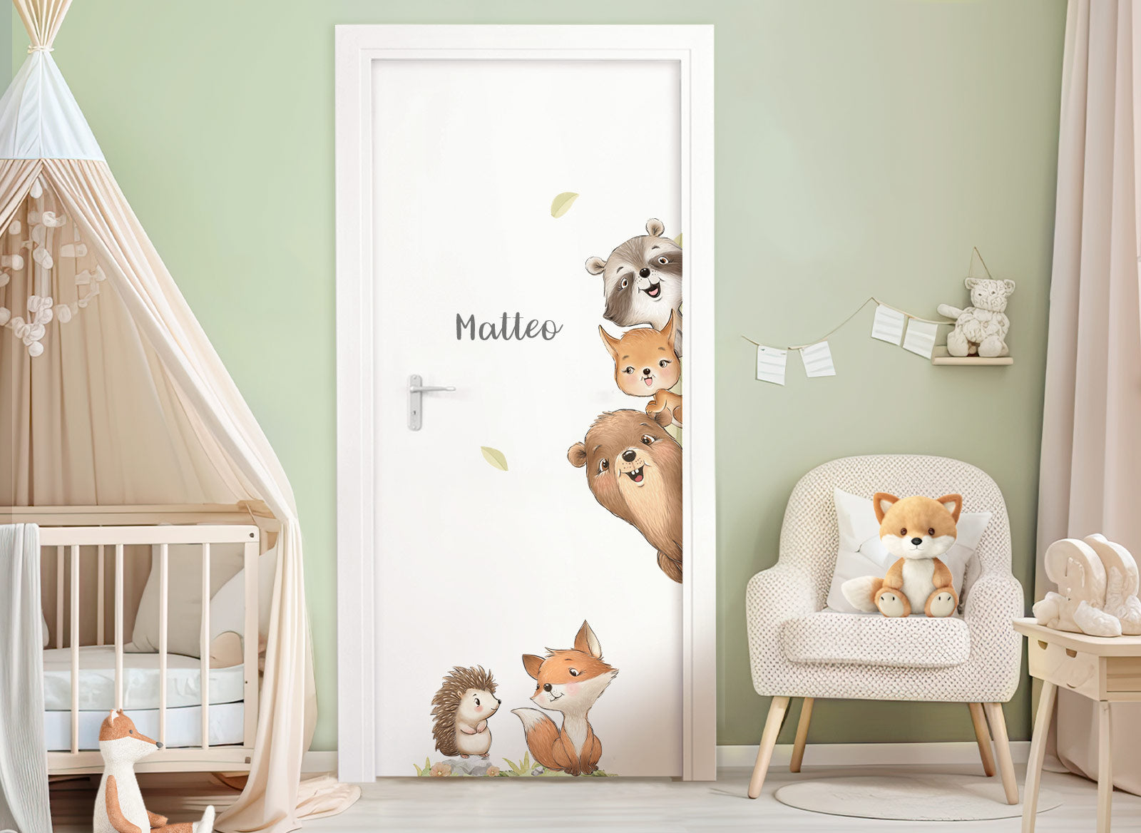Wandtattoo Türsticker Waldtiere mit & ohne Wunschname