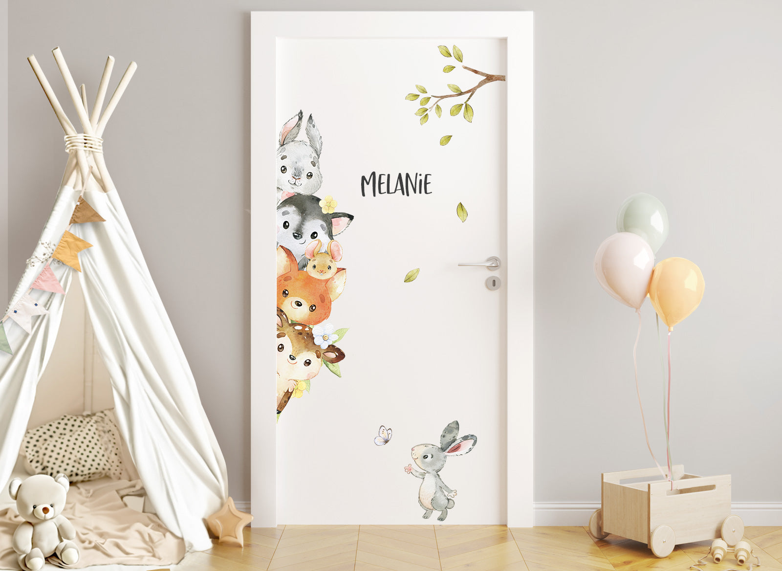 Wandtattoo Türsticker Waldtiere personalisiert DK1045