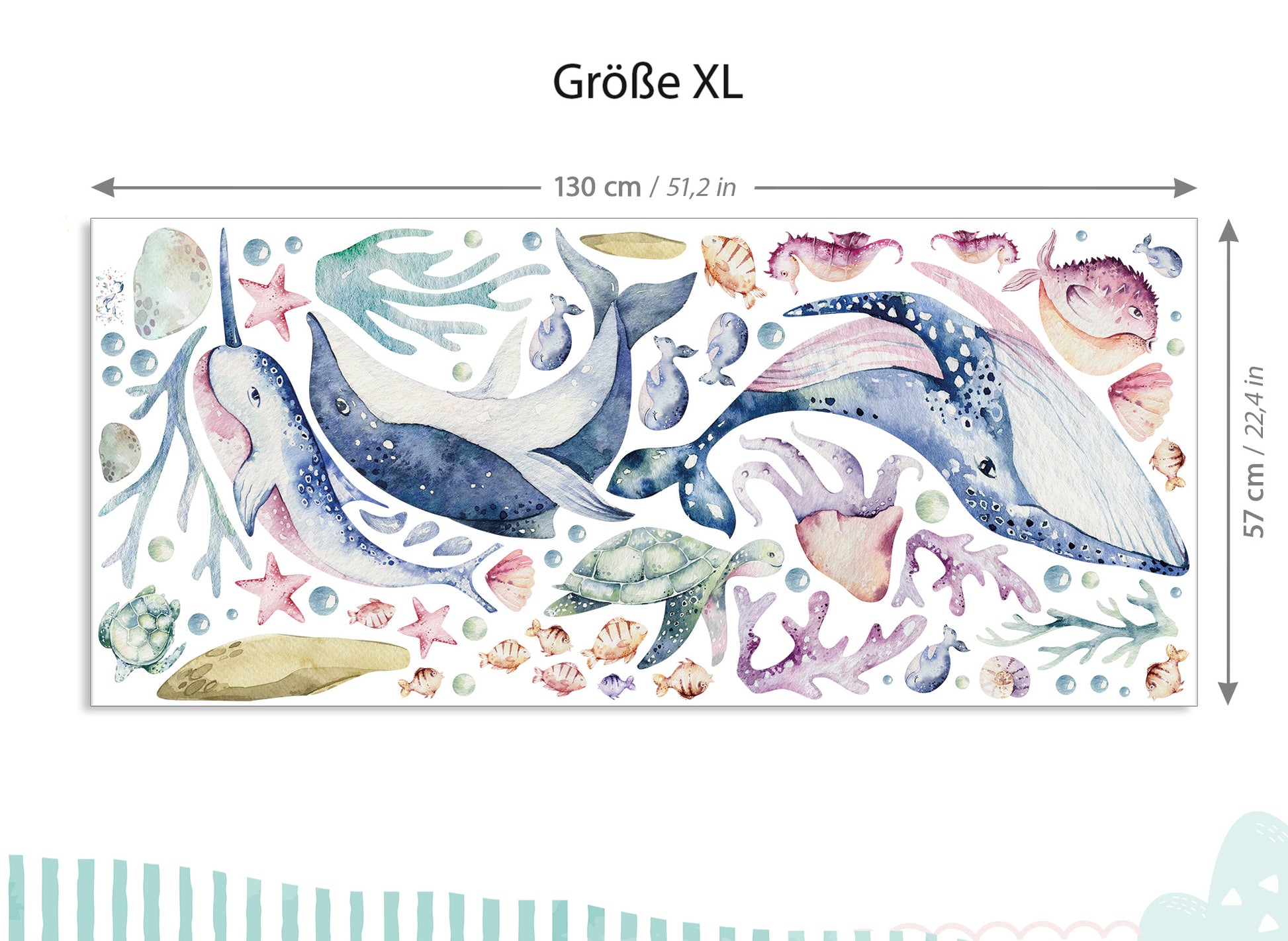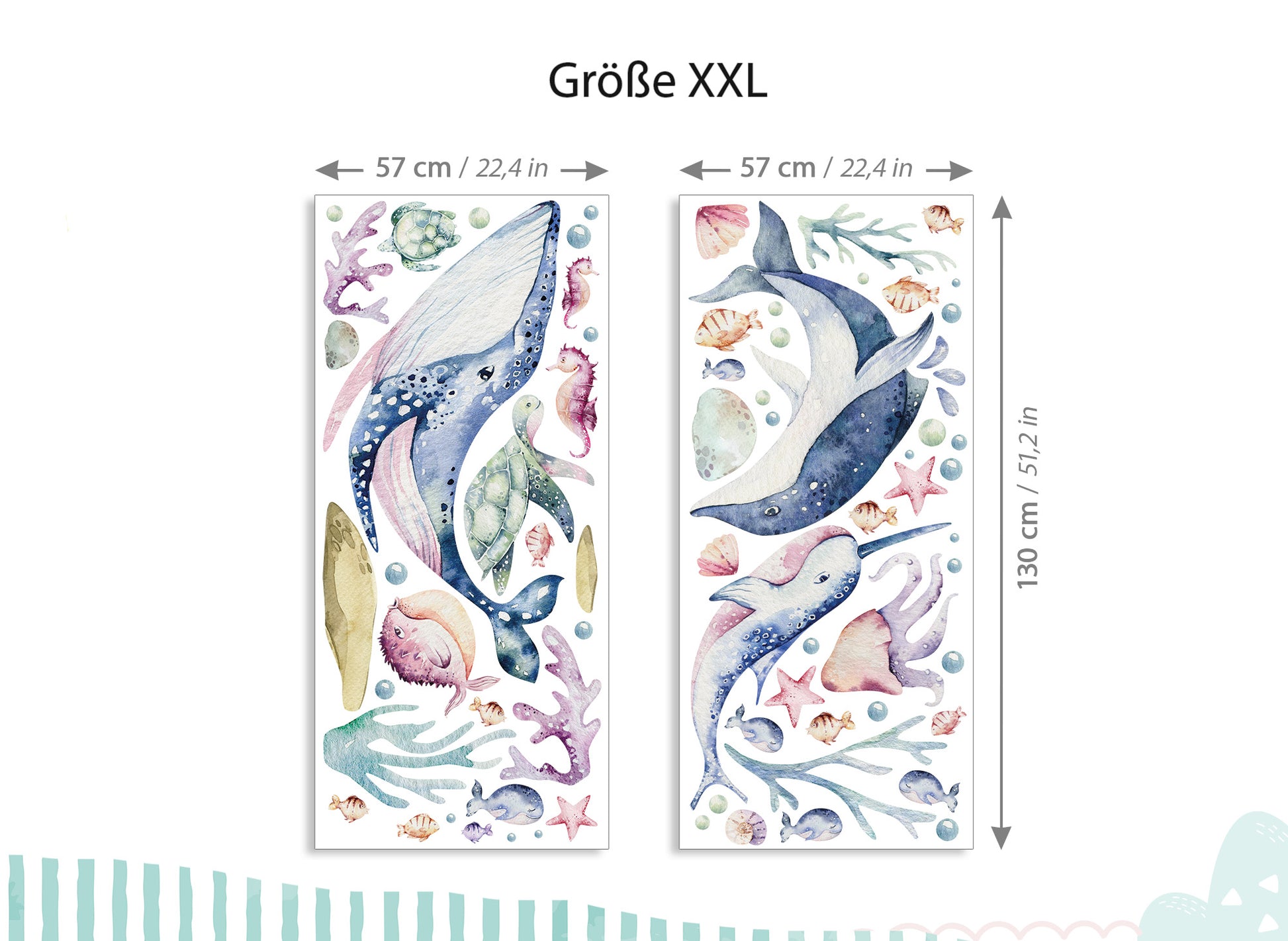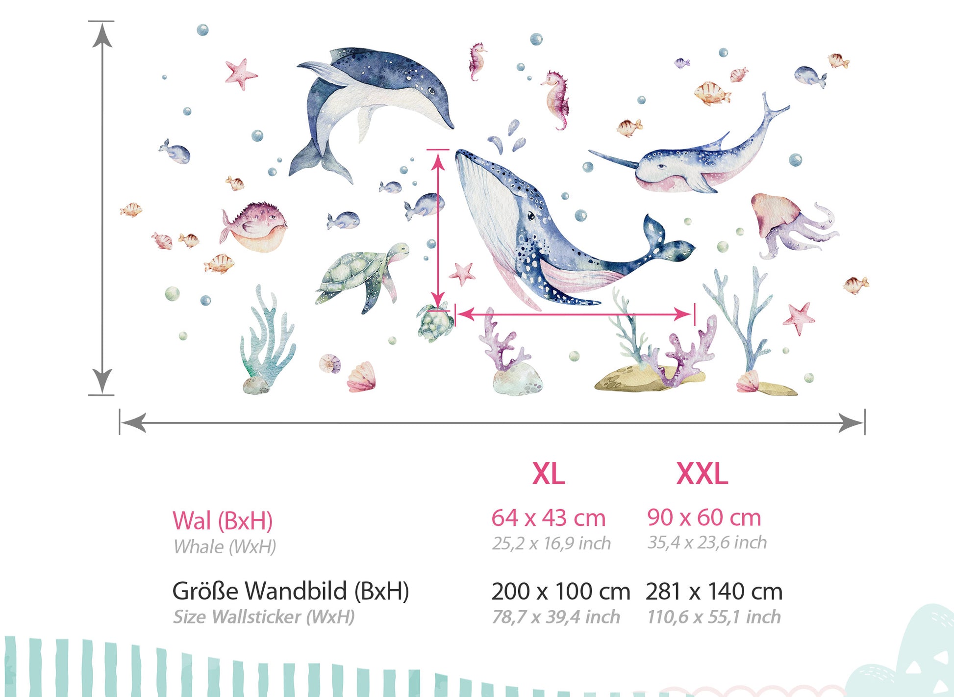 - XL - 200 x 100 cm und der Wal hat eine Größe von 64 x 43 cm