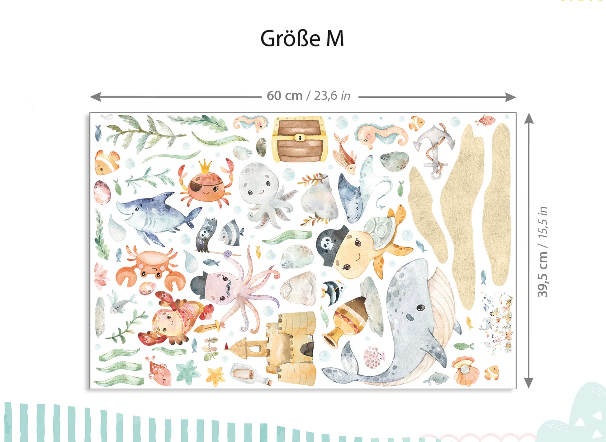 - M - 87 x 46 cm und der Wal hat eine Größe von 17 x 20 cm