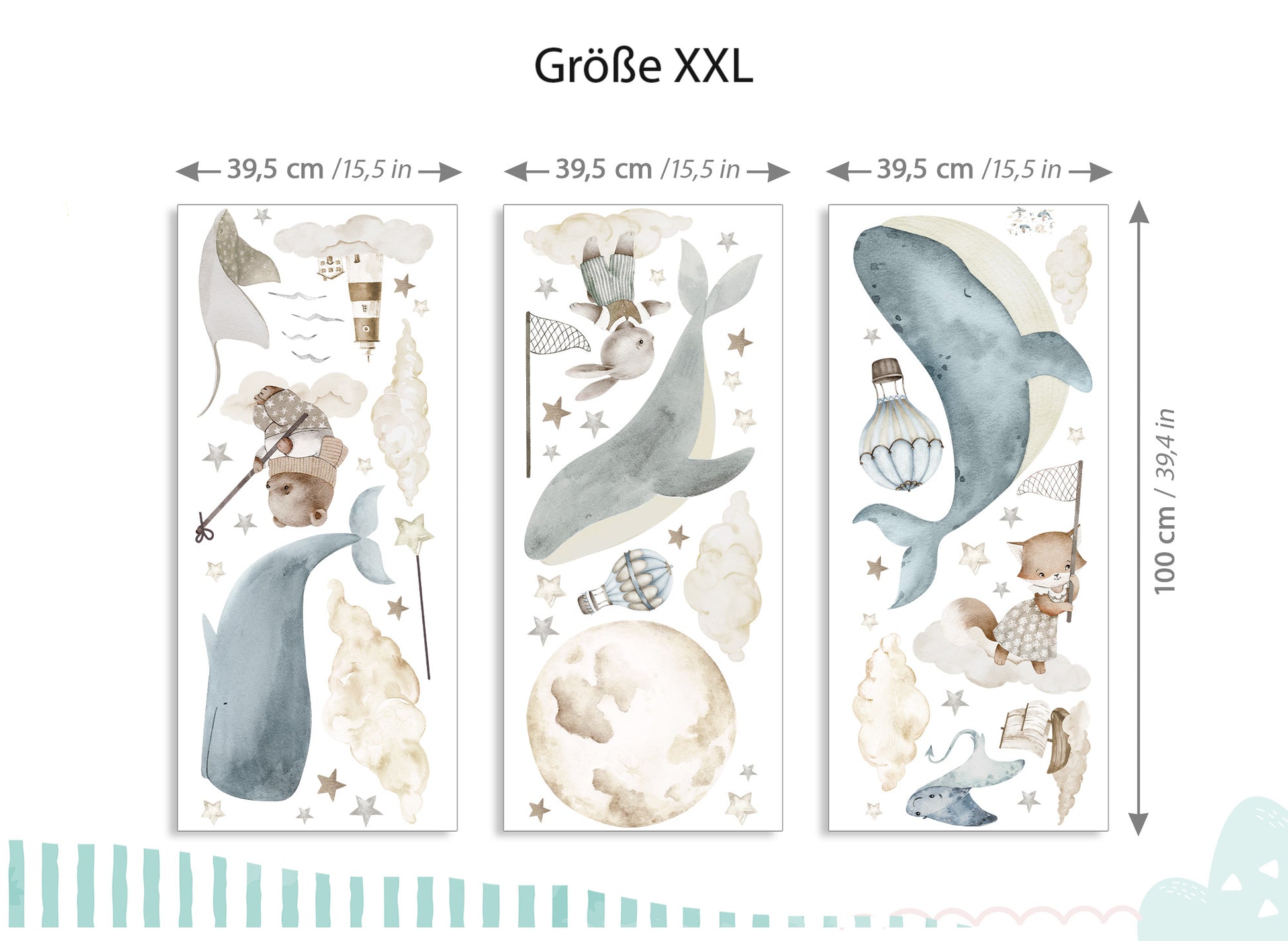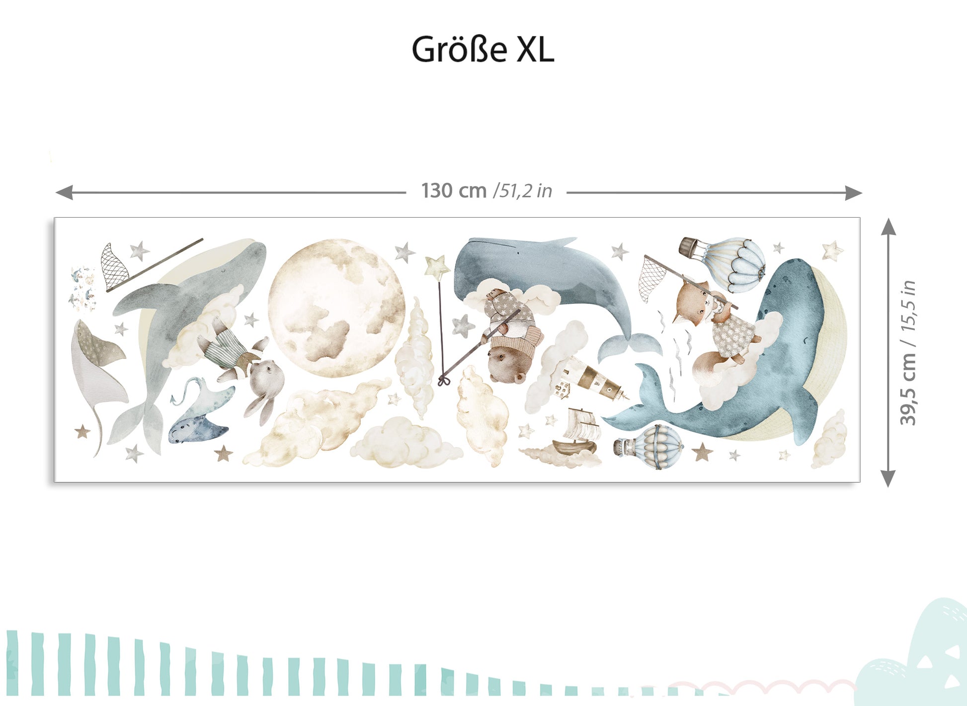 - XL - 142 x 80 cm und der Wal hat eine Größe von 41 x 40 cm