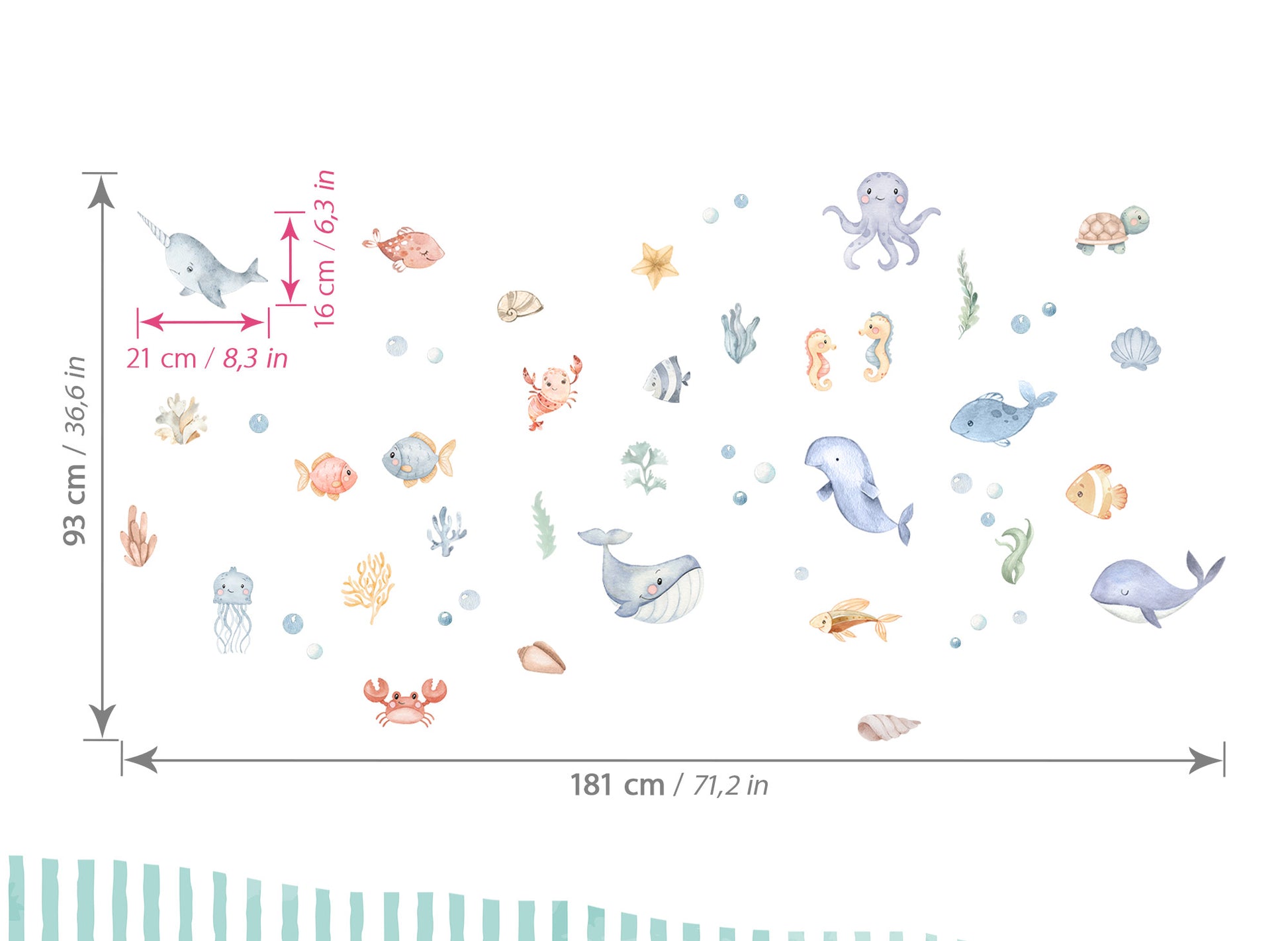 - 181 x 93 cm und der Wal mit Horn hat eine Größe von 21 x 16 cm