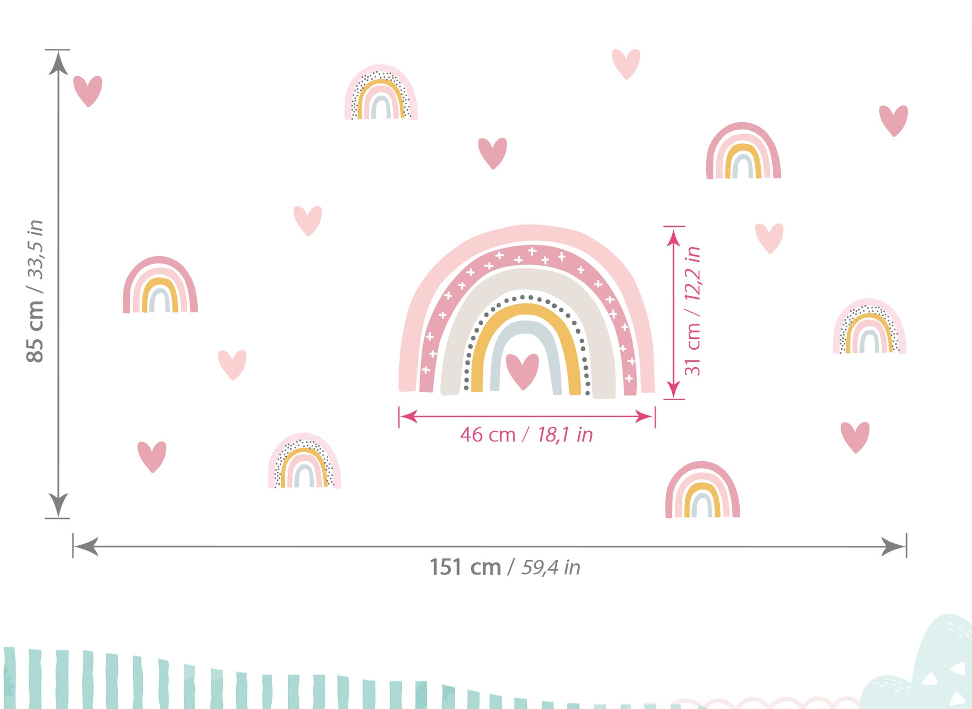 Wandtattoo viele Regenbögen mit Herzchen DK1081