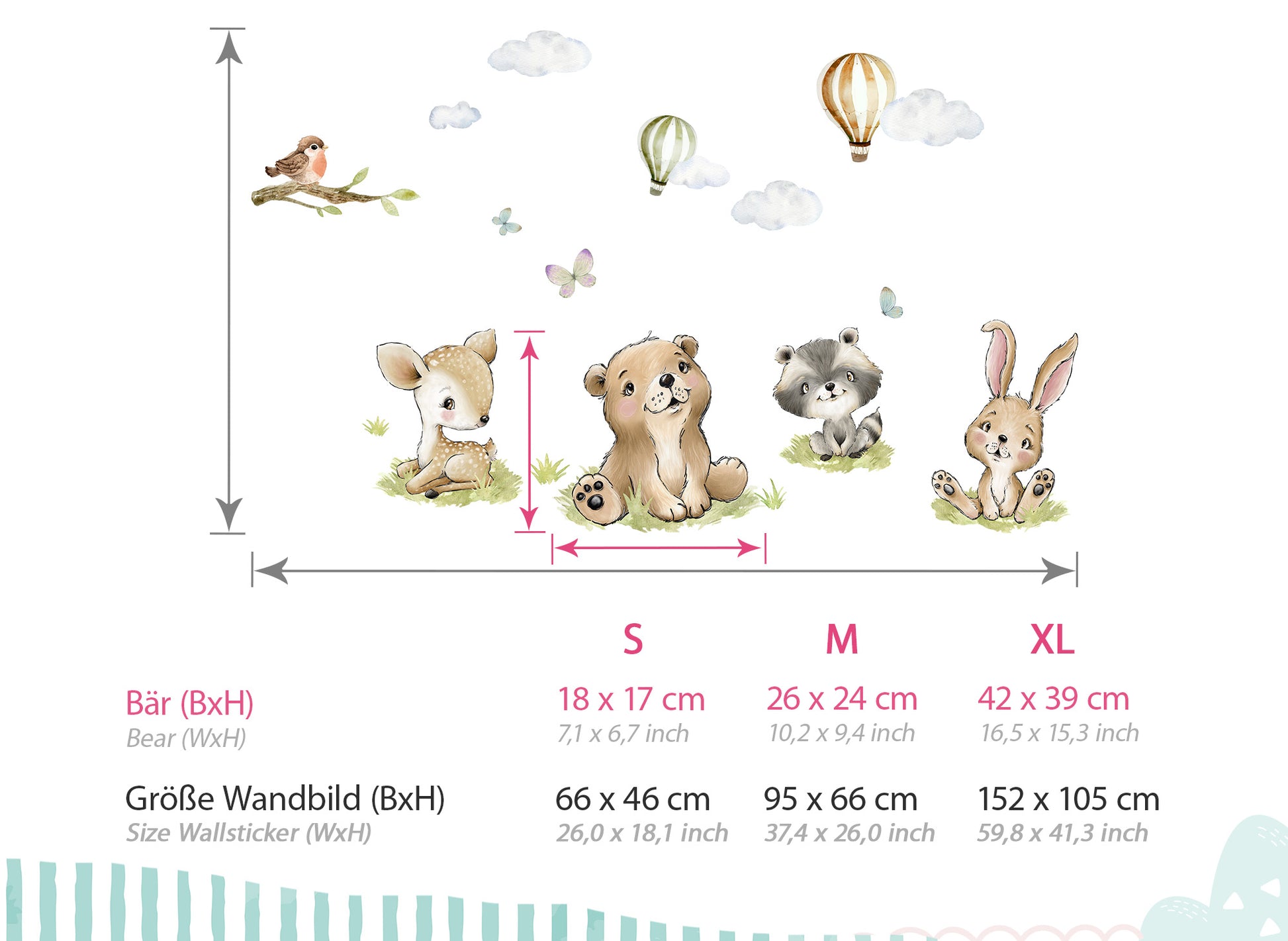 - M - 95 x 66 cm und der Bär hat eine Größe von 26 x 24 cm