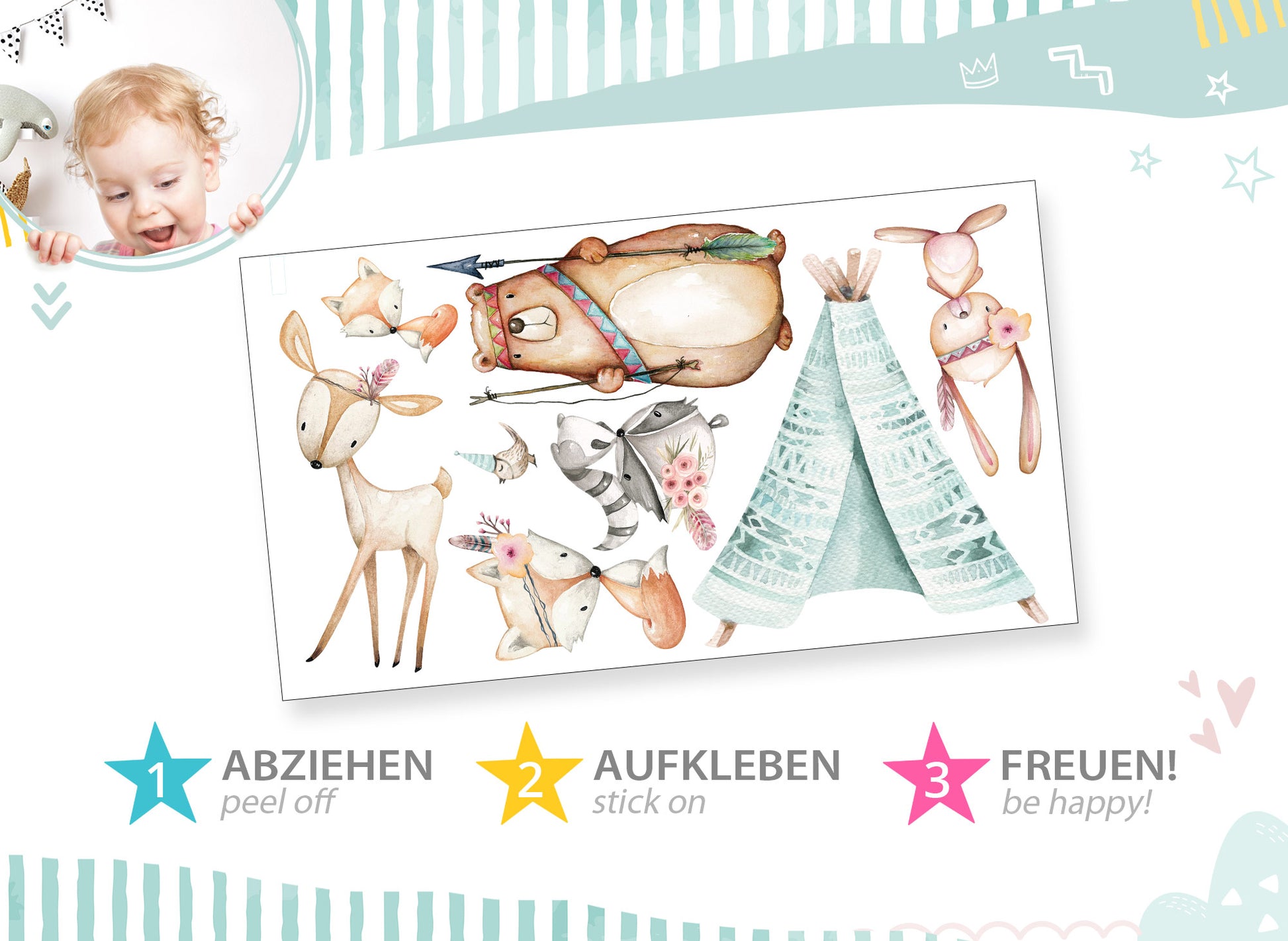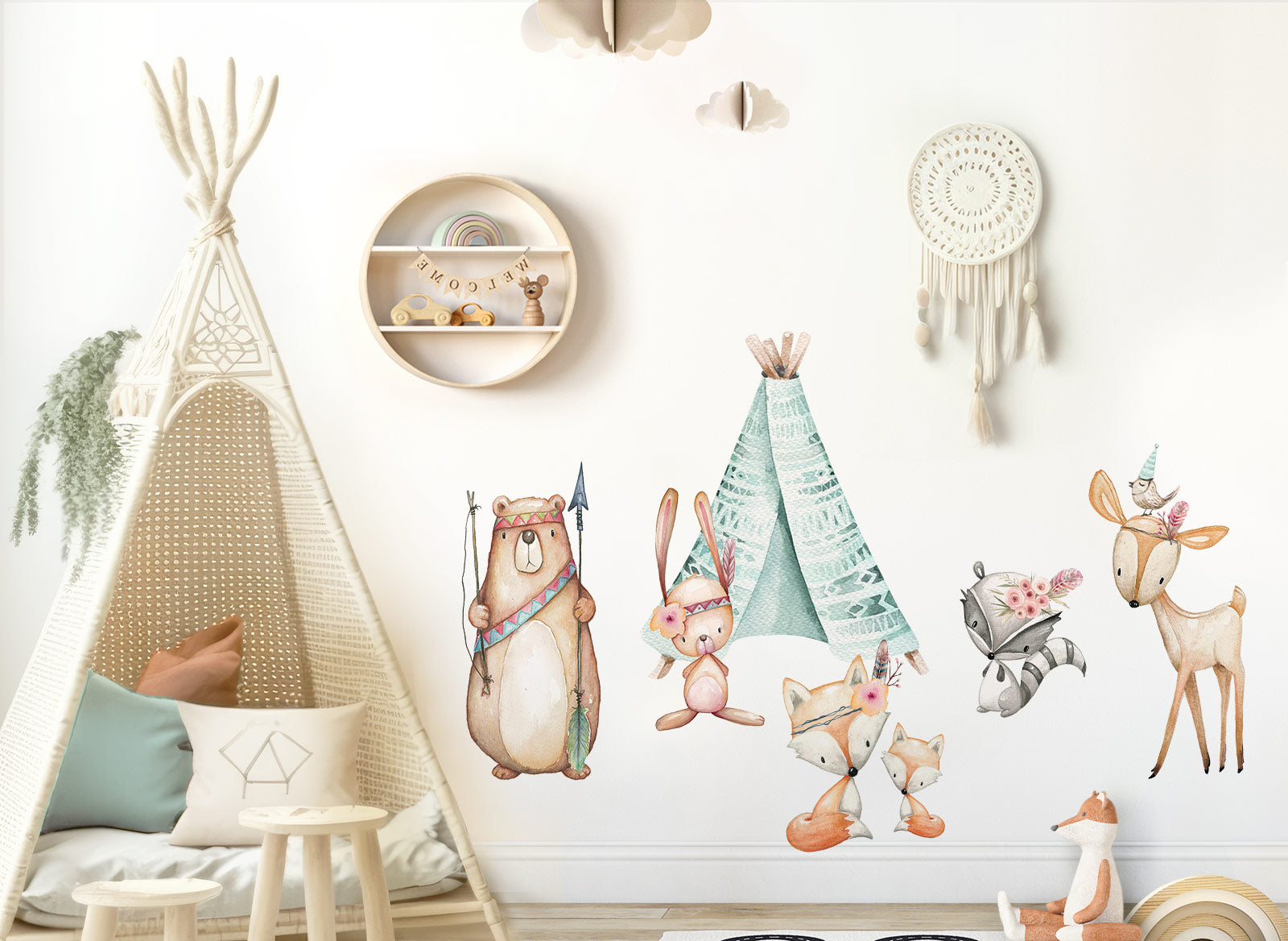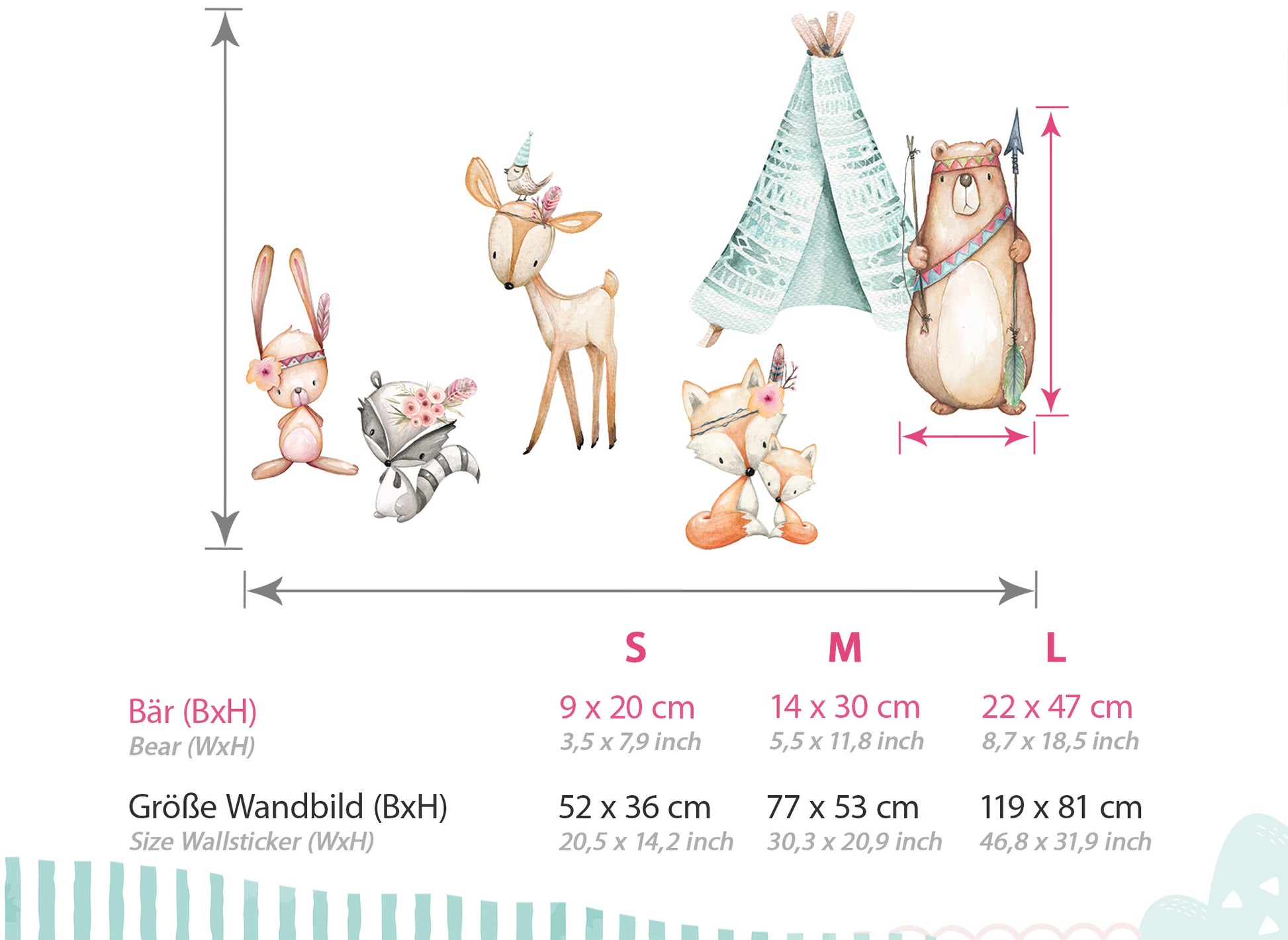 Wandtattoo Waldtiere & Bär mit Pfeil und Bogen