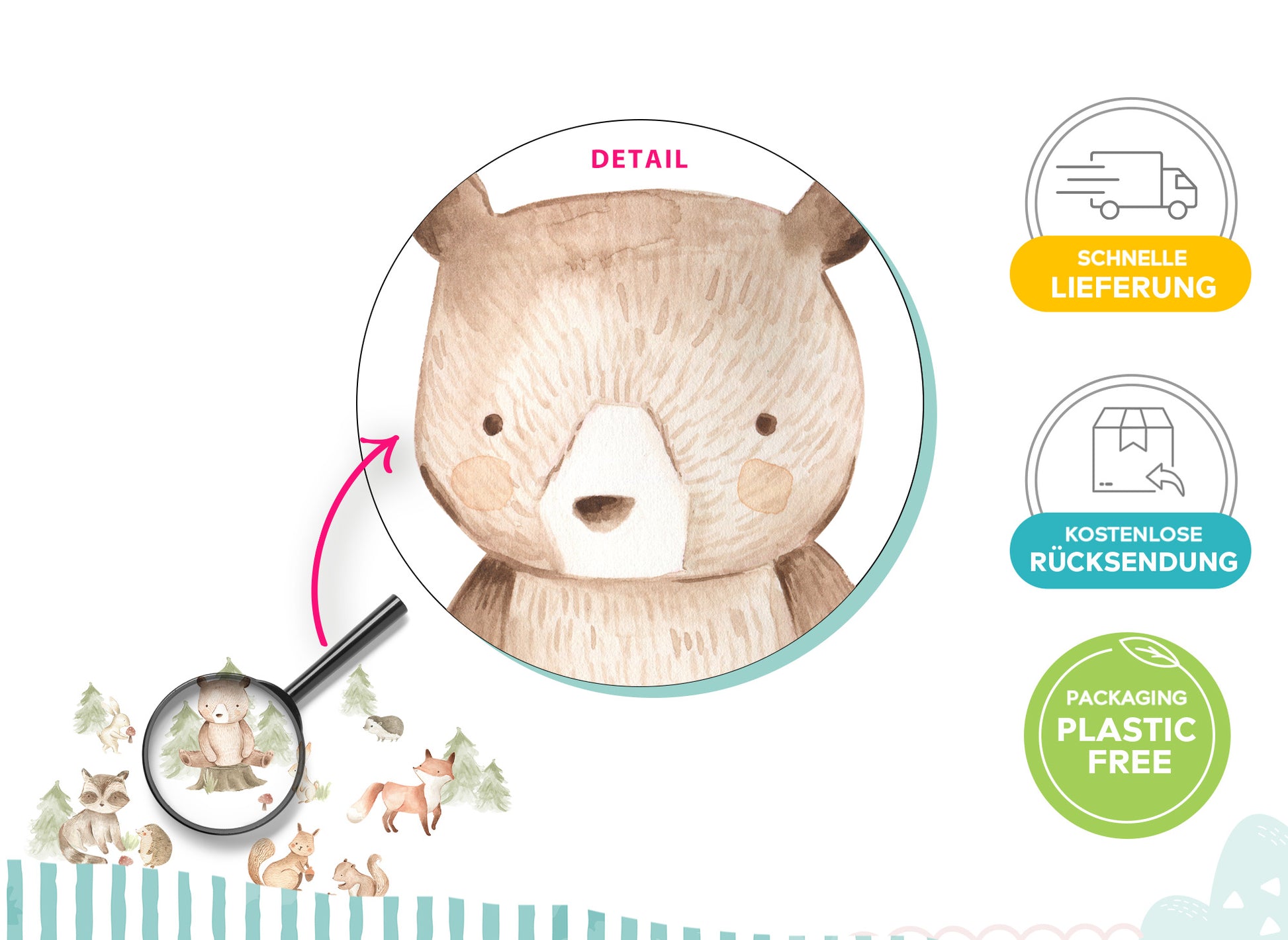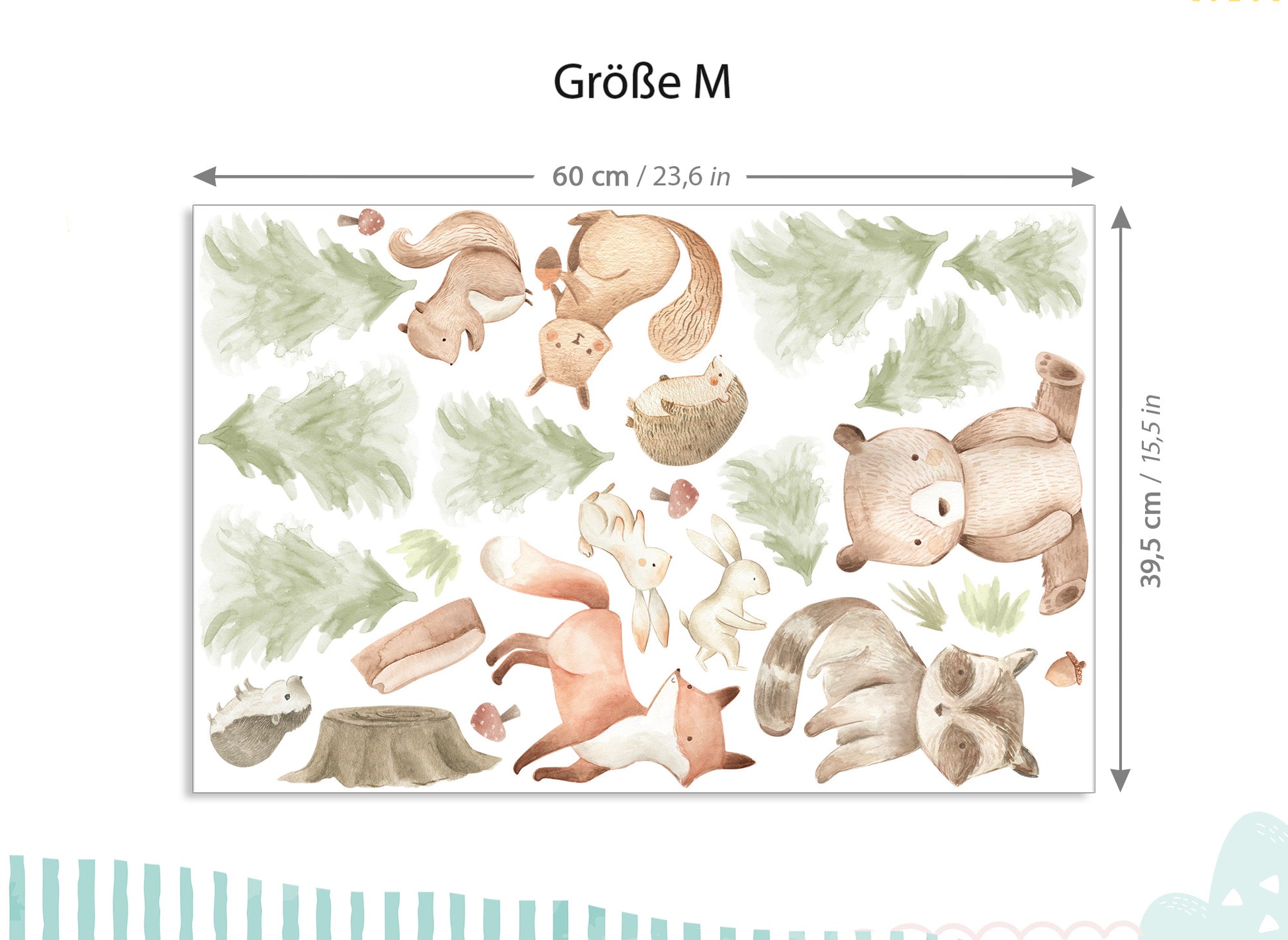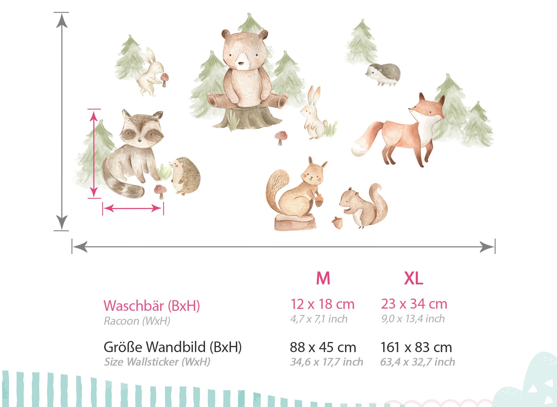 - M - 88 x 45 cm und der Waschbär hat eine Größe von 12 x 18 cm