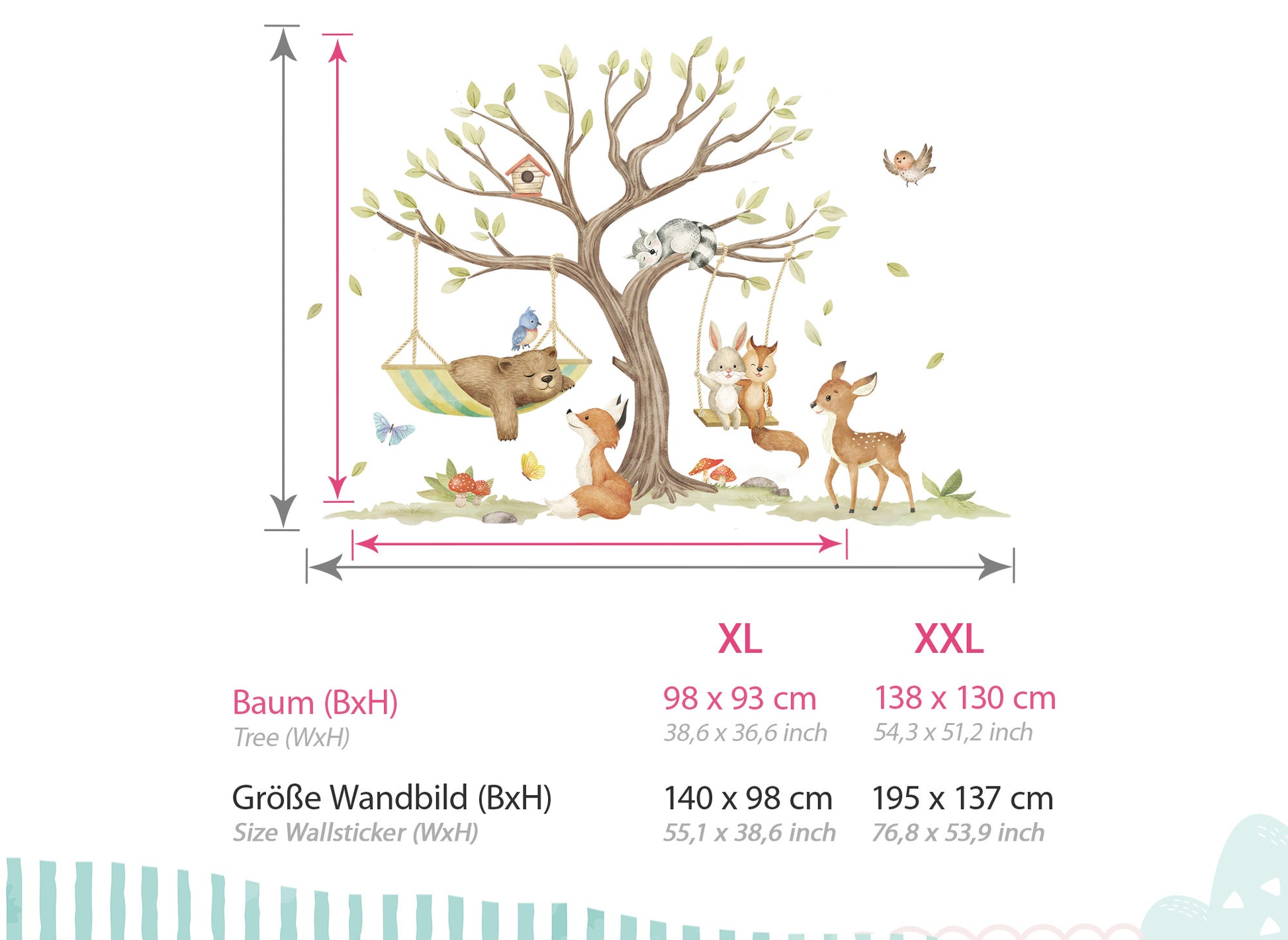 - XL - 140 x 98 cm und der Baum hat eine Größe von 98 x 93 cm