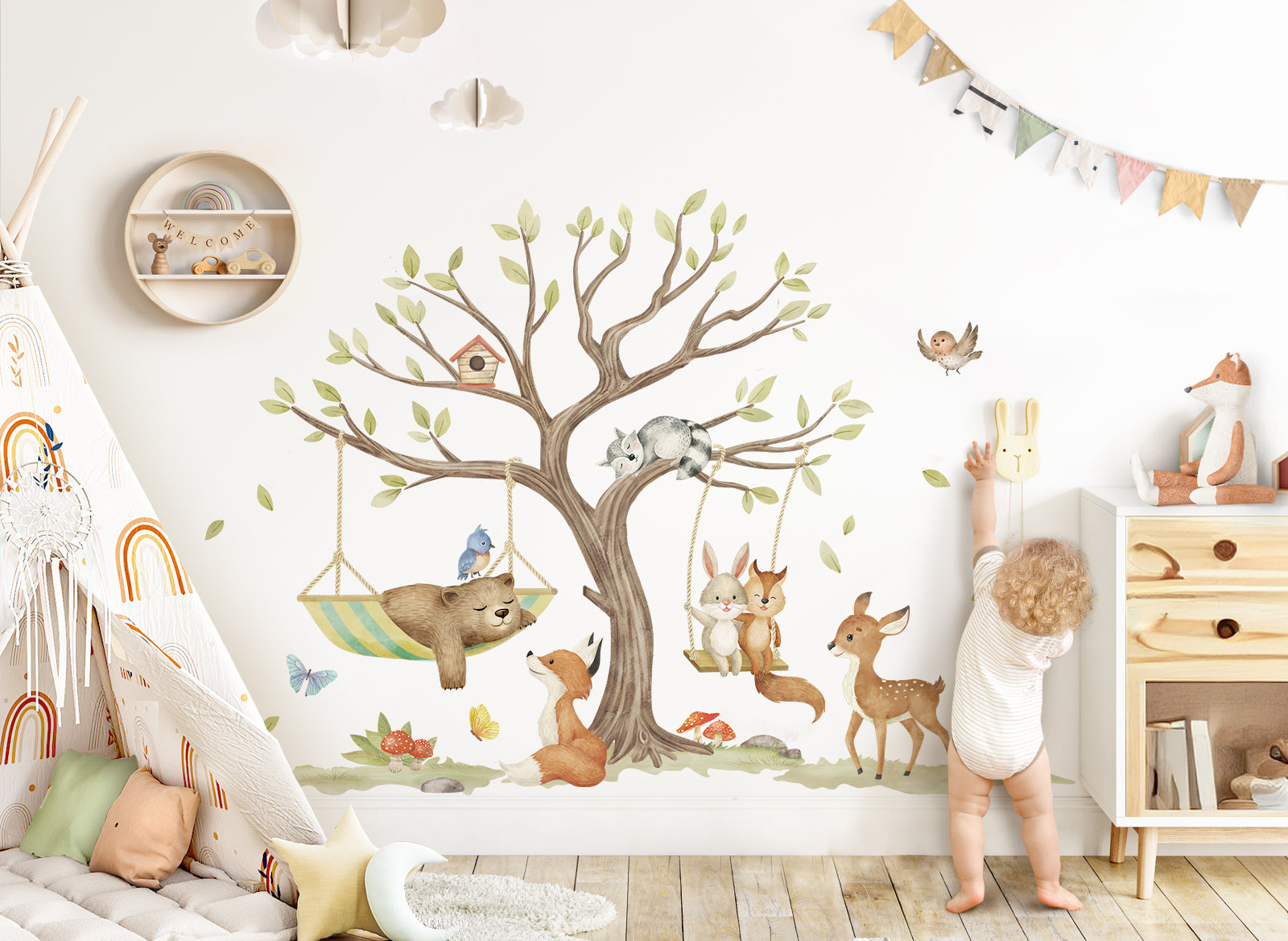 Wandtattoo Waldtiere mit Baum