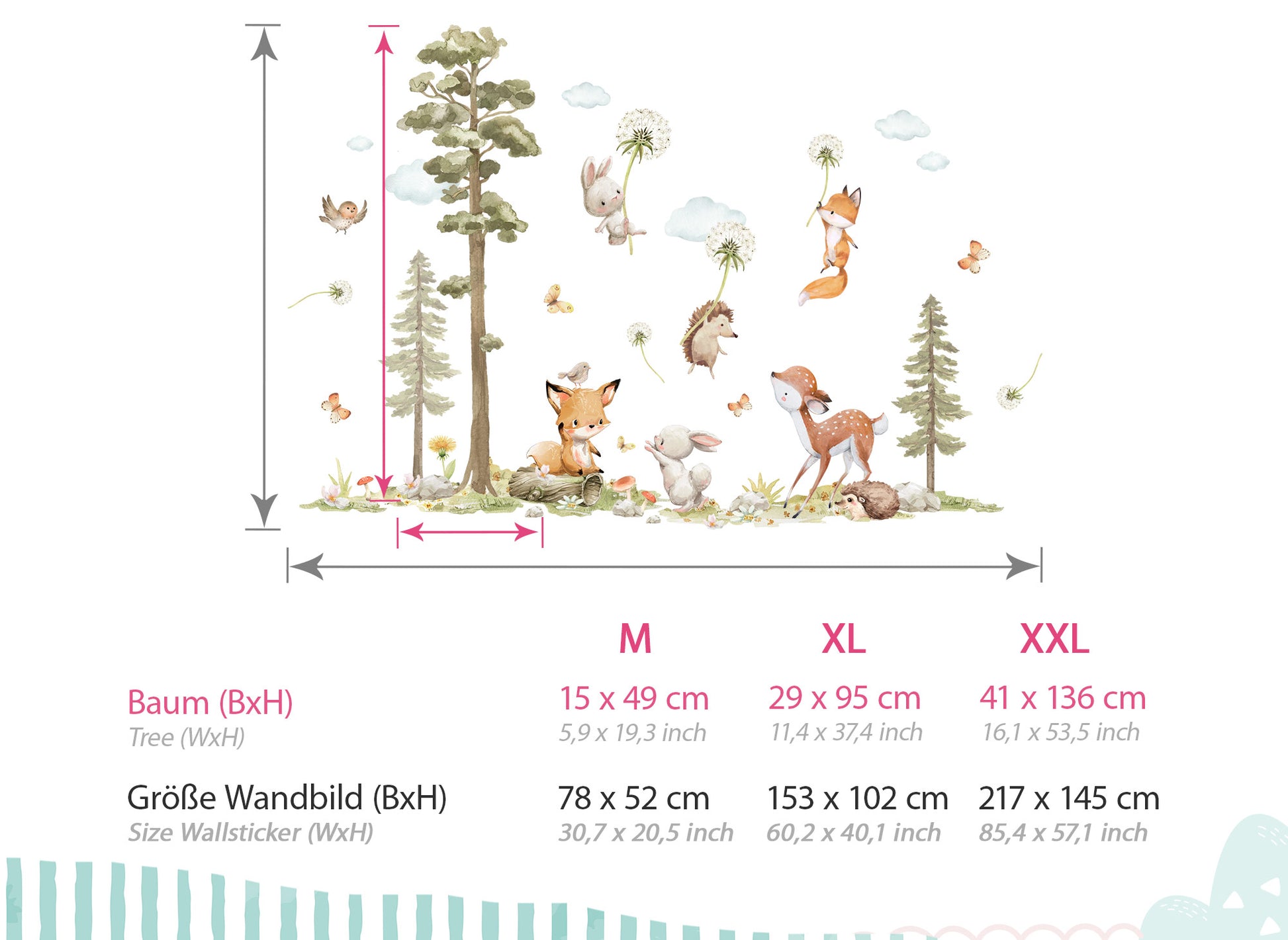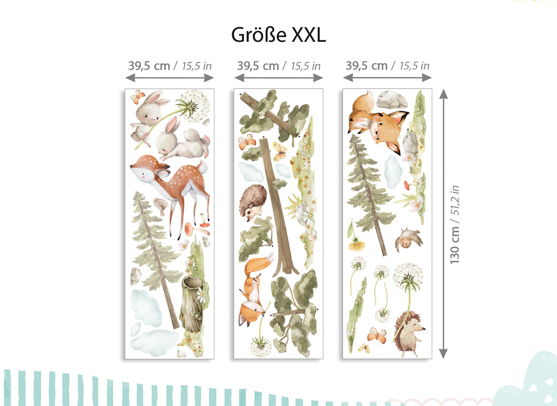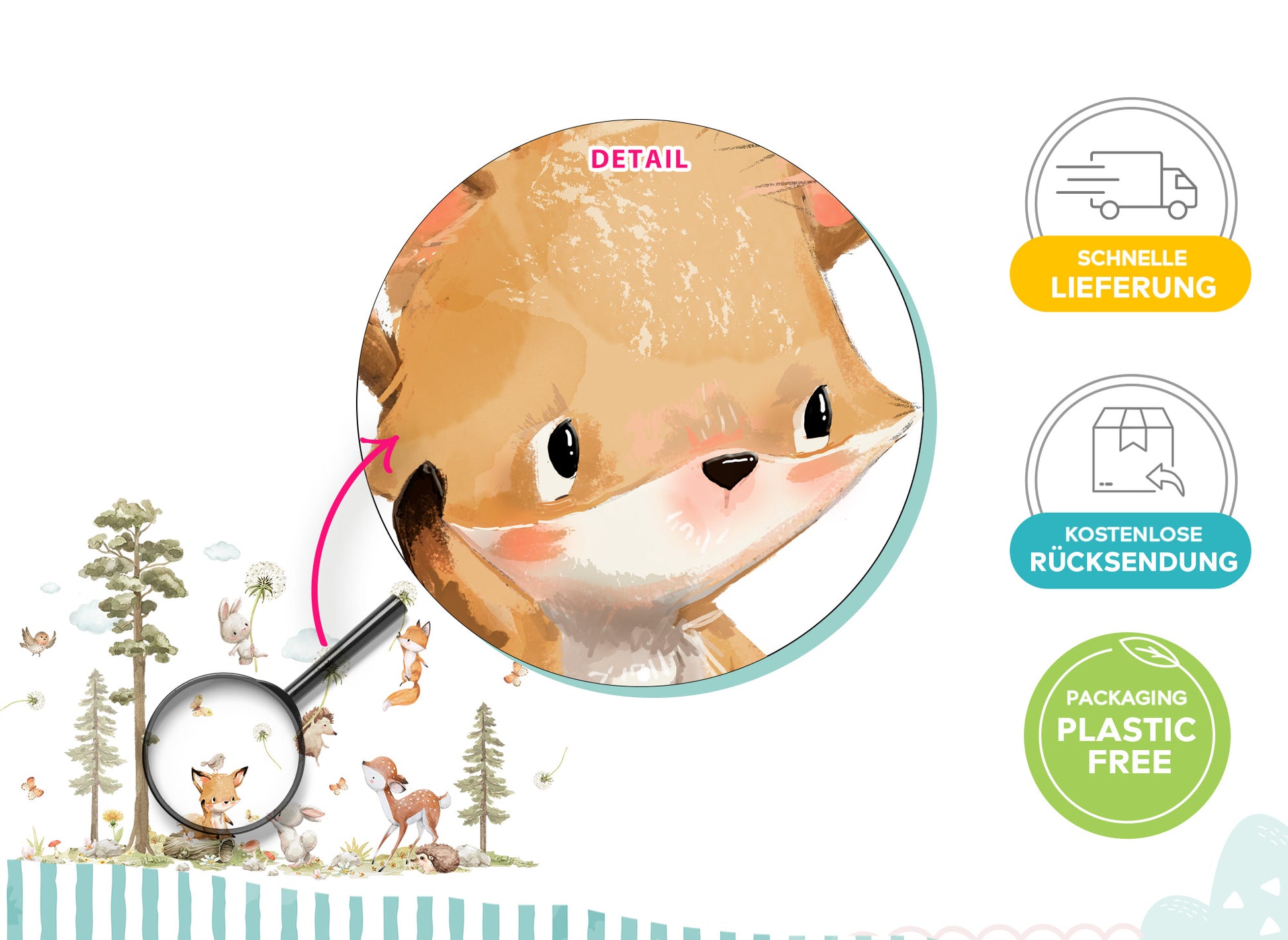 Das Motiv mit den Waldtieren ist ganz niedlich fürs Kinderzimmer. Der Kleber hält gut an der Wand.